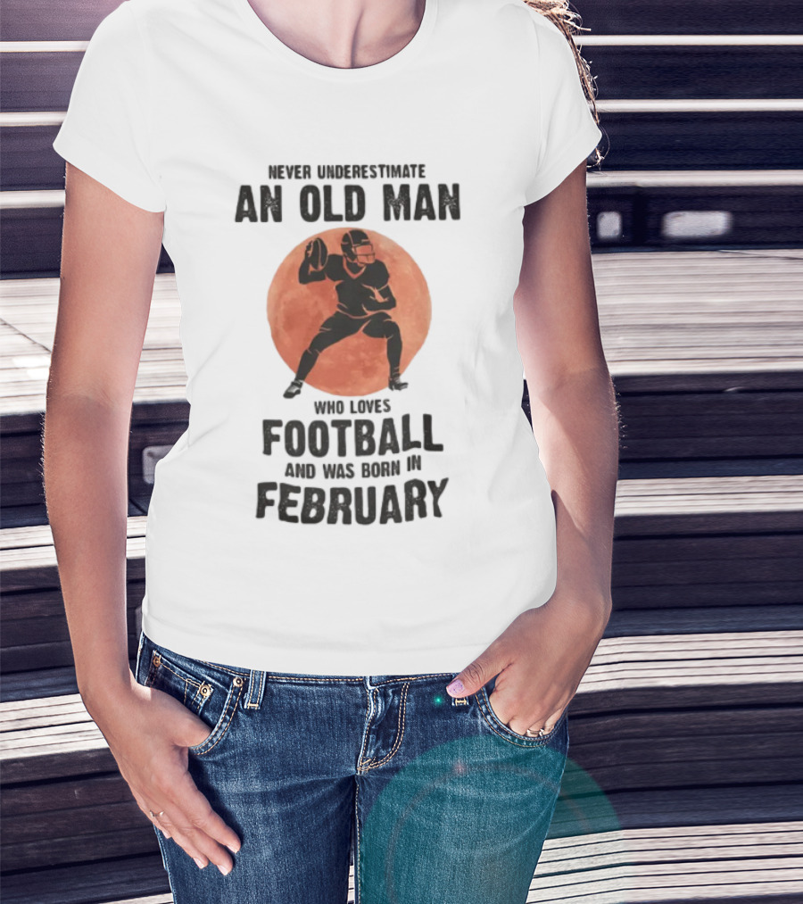Never Underestimate An Old Man Who Loves Football And Was Born In February T-Shirt