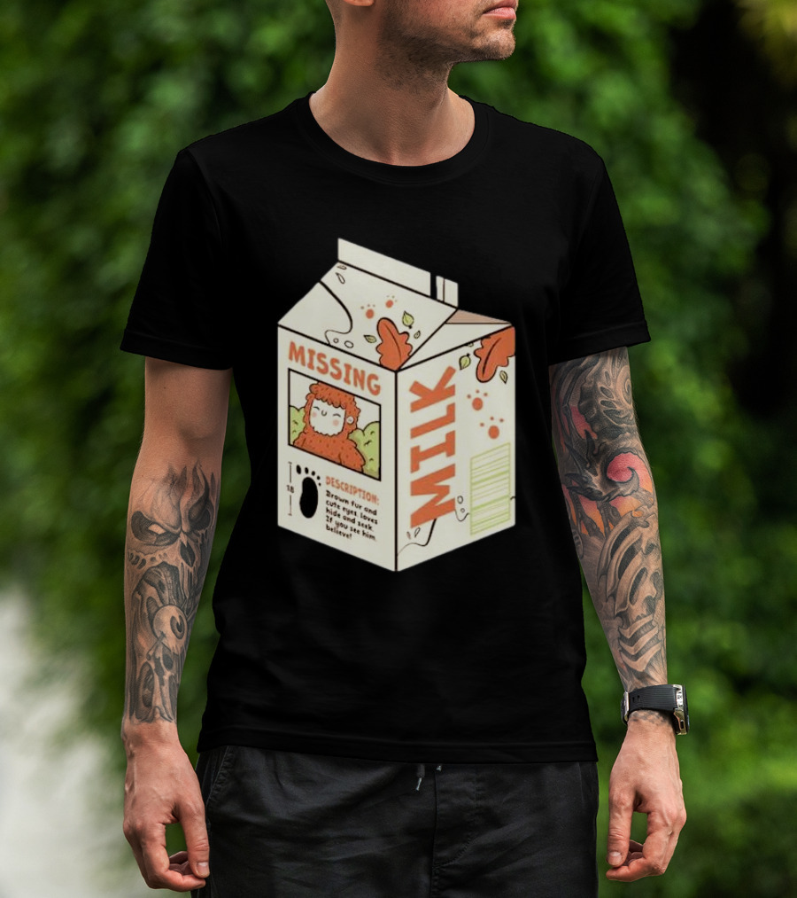 Missing Milk Bigfoot With Brown Fur And Cute Eyes Loves Hide And Seek If You See Him Believe Tobe Fonseca T-Shirt