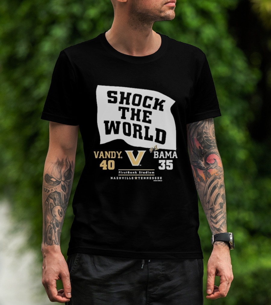 Shock The World Vandy 40 Bama 35 FirstBank Stadium Nashville T-Shirt