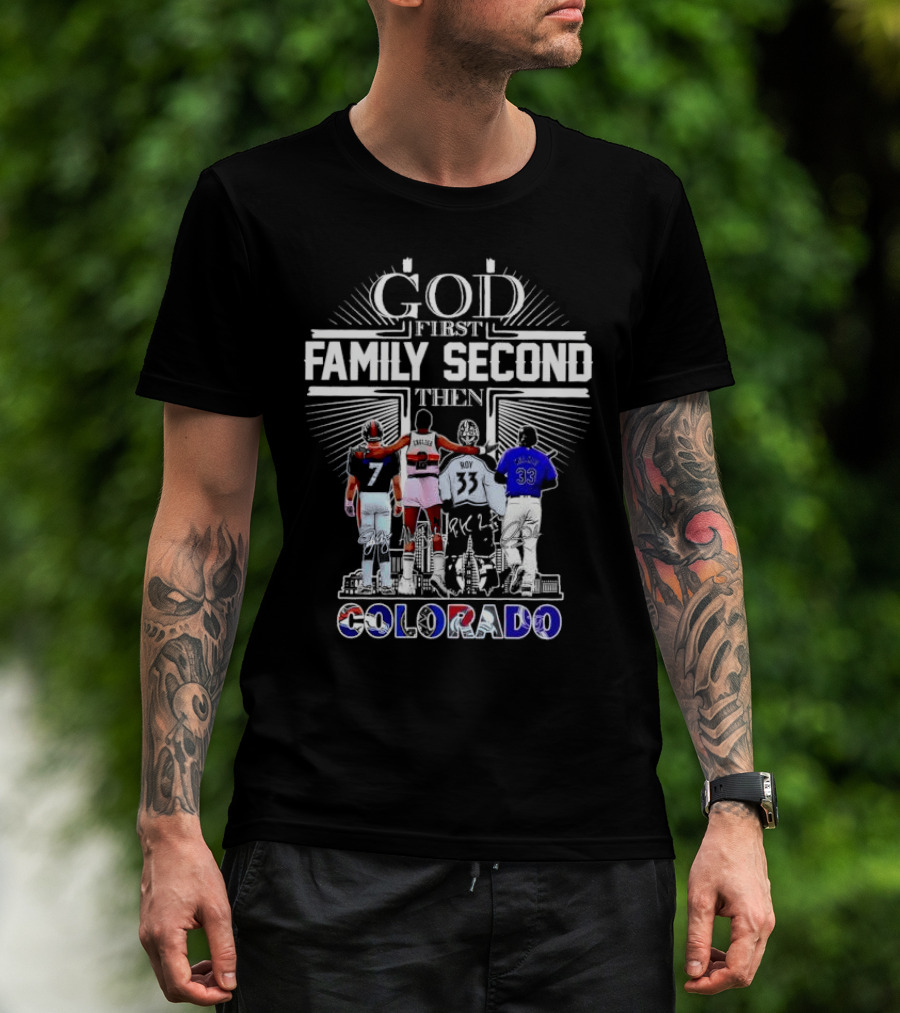God First Family Second Then Colorado Broncos Nuggets Avalanche Rockies T-Shirt