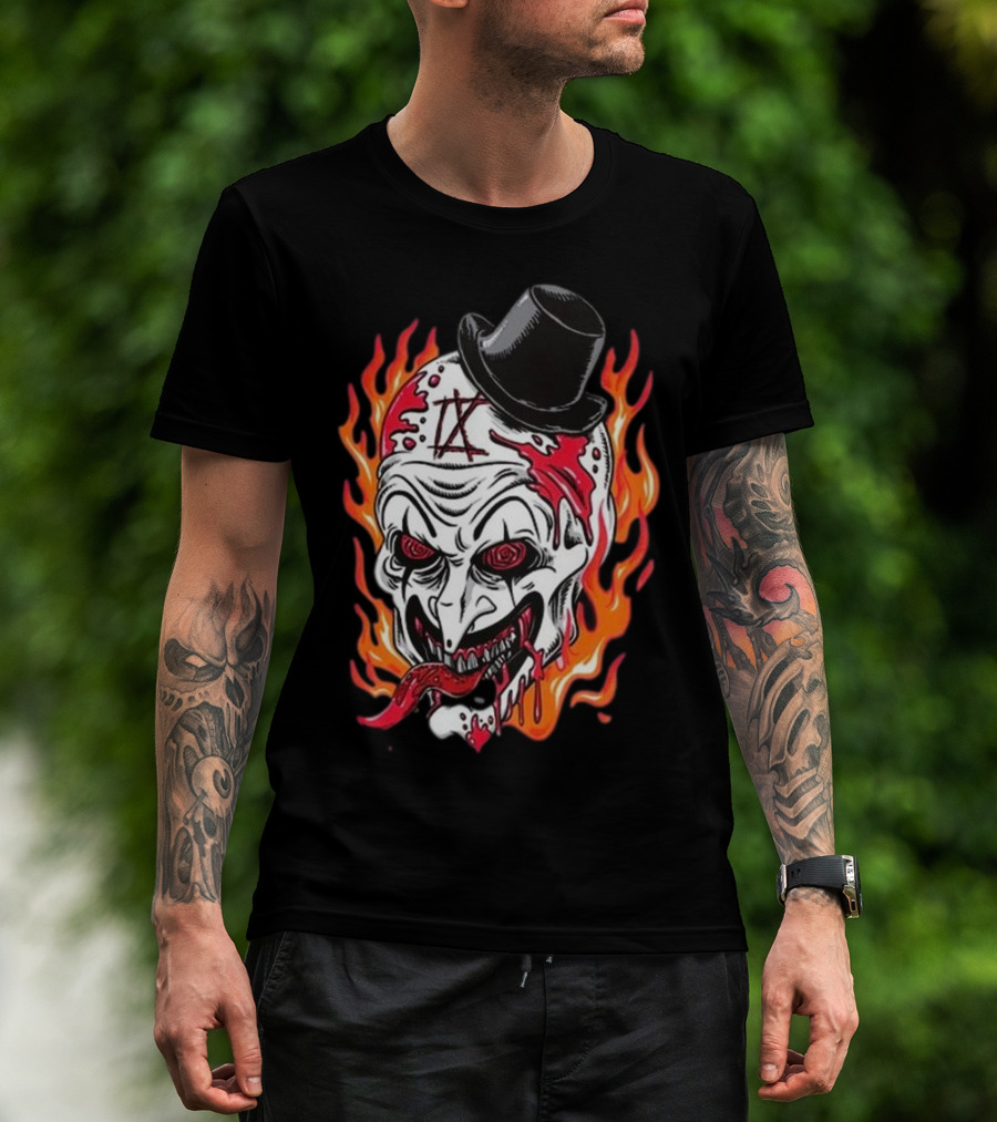 Psychos Only Art Will Never Die Flaming Skull Top Hat T-Shirt