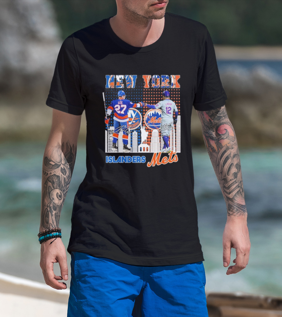 New York Islanders Mets Anders Lee Francisco Lindor Collaboration T-Shirt