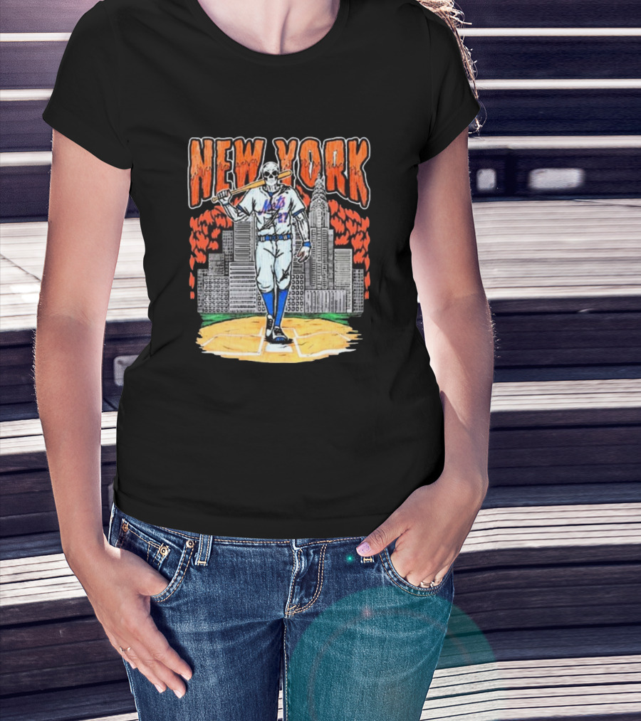 Reed Garrett New York Mets MLB Painting Skeleton Batter City Skyline T-Shirt