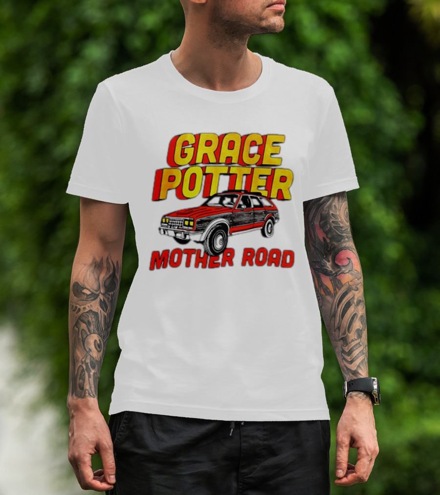 The Grace Potter Mother Road Retro Car T-shirt is designed for everyday wear and a consistent fit. Fabric is pre-shrunk ring-spun cotton with durable stitching. See the size chart below for exact measurements.