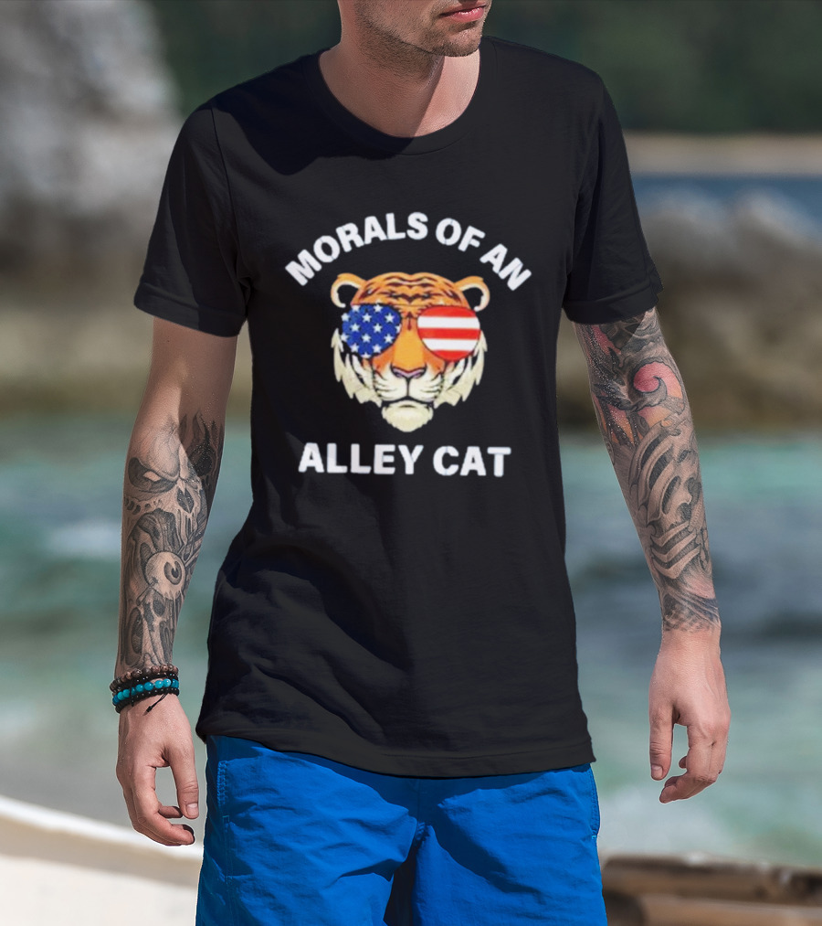 Morals Of An Alley Cat Tiger With American Flag Sunglasses T-Shirt