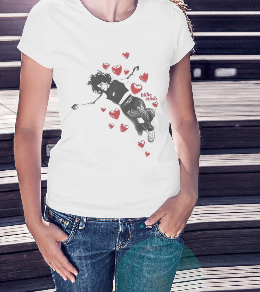 Billie Eilish Surrounded By Floating Red Hearts Valentine T-Shirt