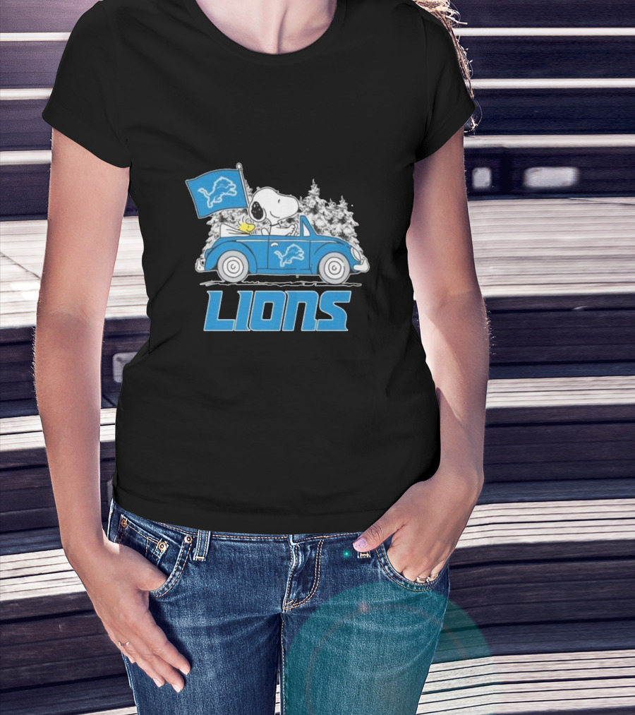 Detroit Lions Snoopy Peanuts Car Christmas Sports T-Shirt