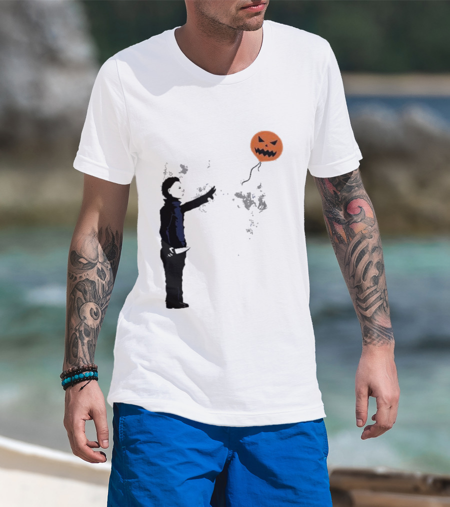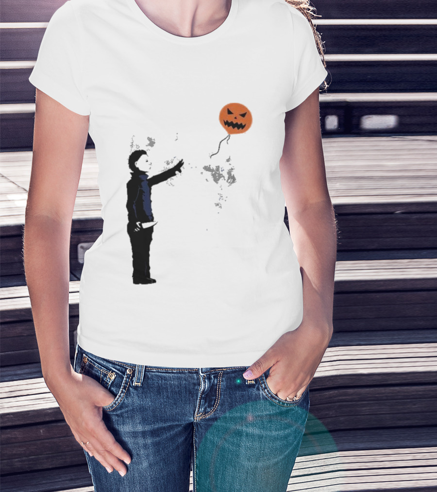 Ballooween Banksy Balloon Girl Meets Michael Myers Terror Horror Balloon T-Shirt