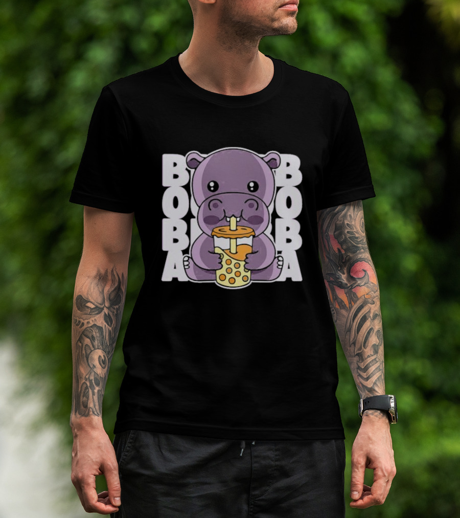 Kawaii Hippo Boba Tea Moo Deng Hippo Boba Boba T-Shirt