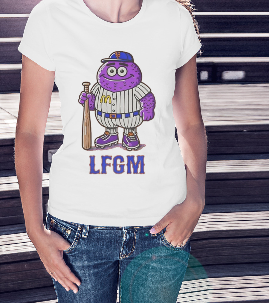 LFGM New York Mets Grimace Cartoon Baseball Bat Character T-Shirt