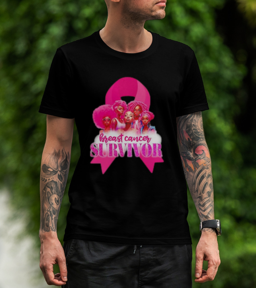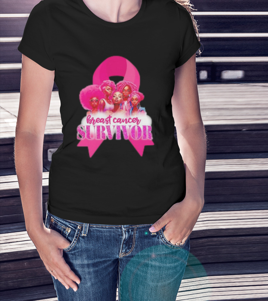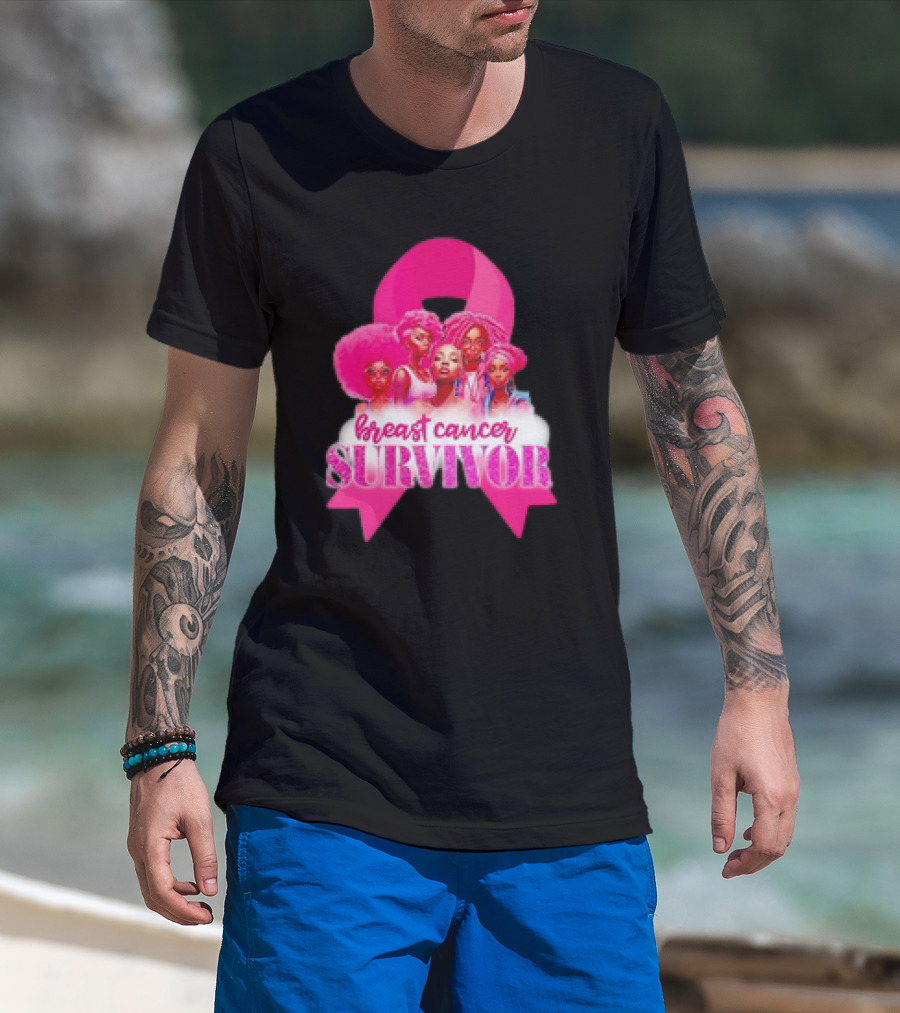 Breast Cancer Survivor Pink Ribbon Black Women Melanin Warrior T-Shirt