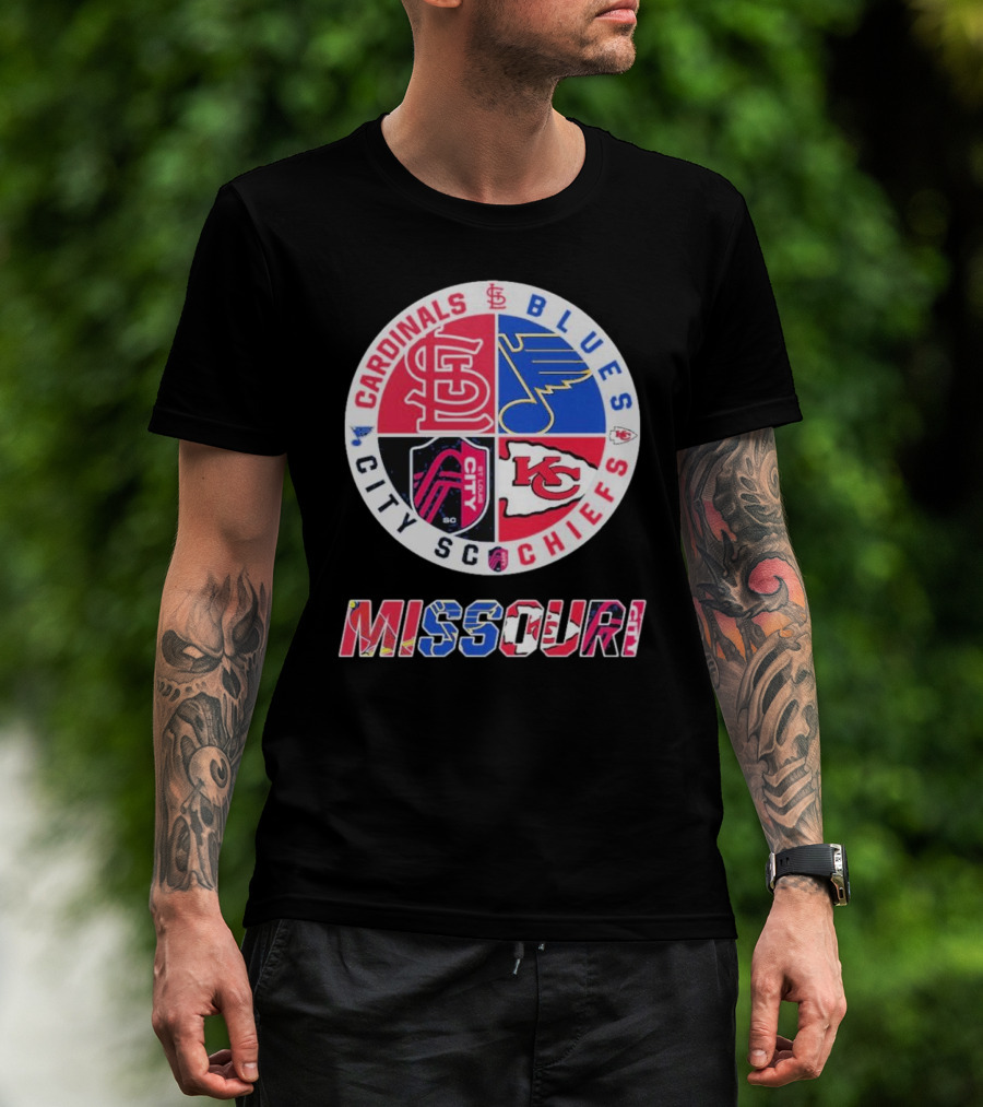 Missouri Cardinals Blues City SC Chiefs Logo Collection T-Shirt