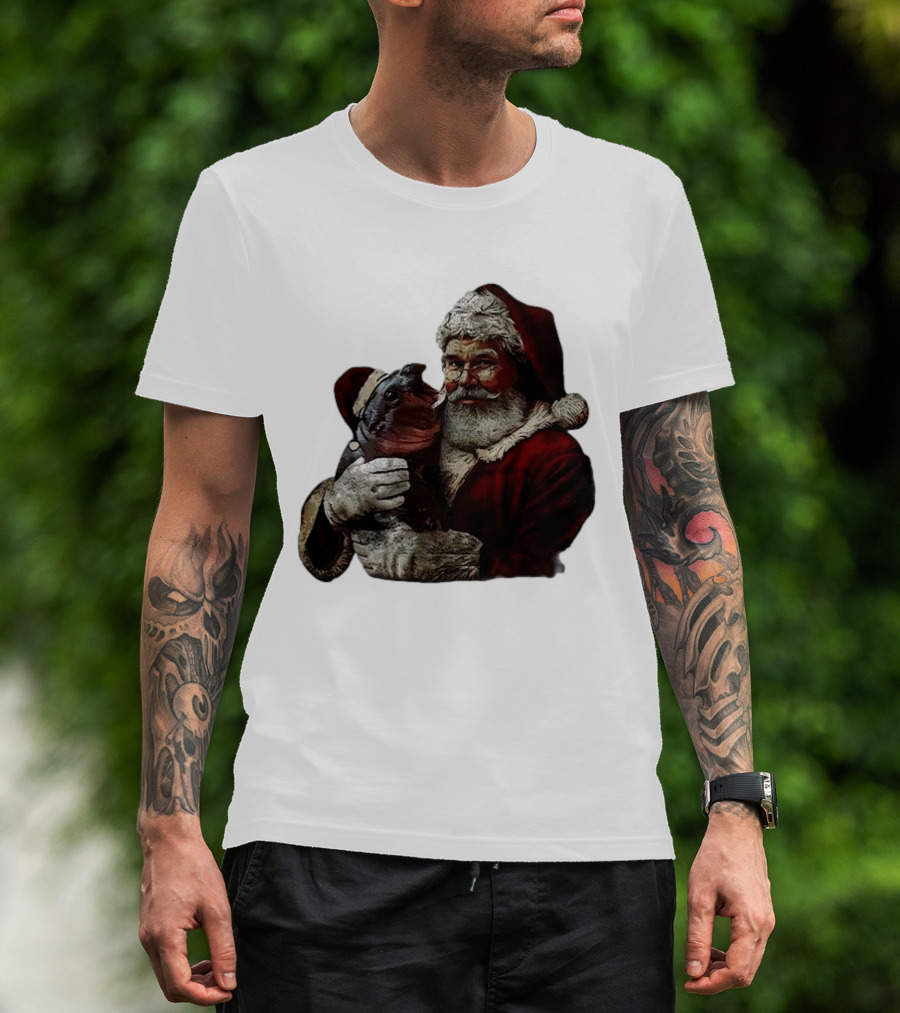 Moo Deng Xmas Funny Christmas Santa Hug Cute Baby Hippo Santa Claus Holiday T-Shirt