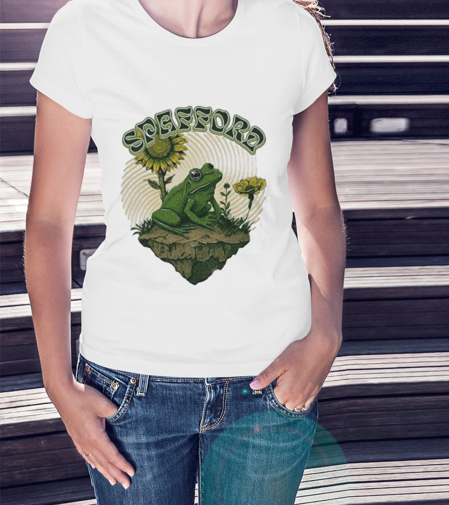 The Spafford Frog Sunflower Rock Plateau T-shirt is designed for everyday wear and a consistent fit. Fabric is pre-shrunk ring-spun cotton with durable stitching. See the size chart below for exact measurements.
