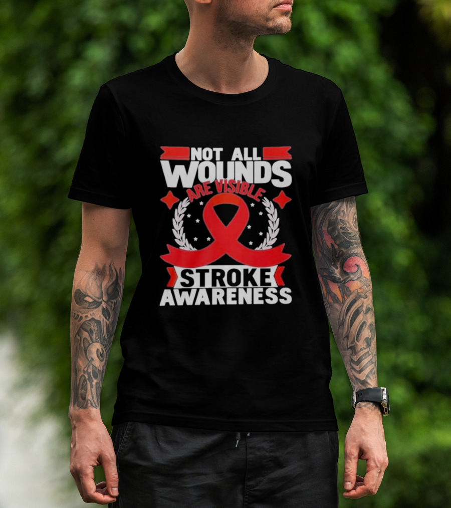 Not All Wounds Are Visible Red Ribbon Stroke Awareness T-Shirt