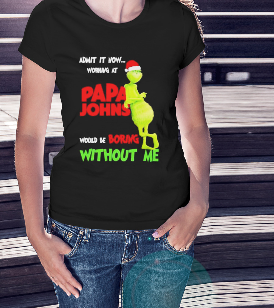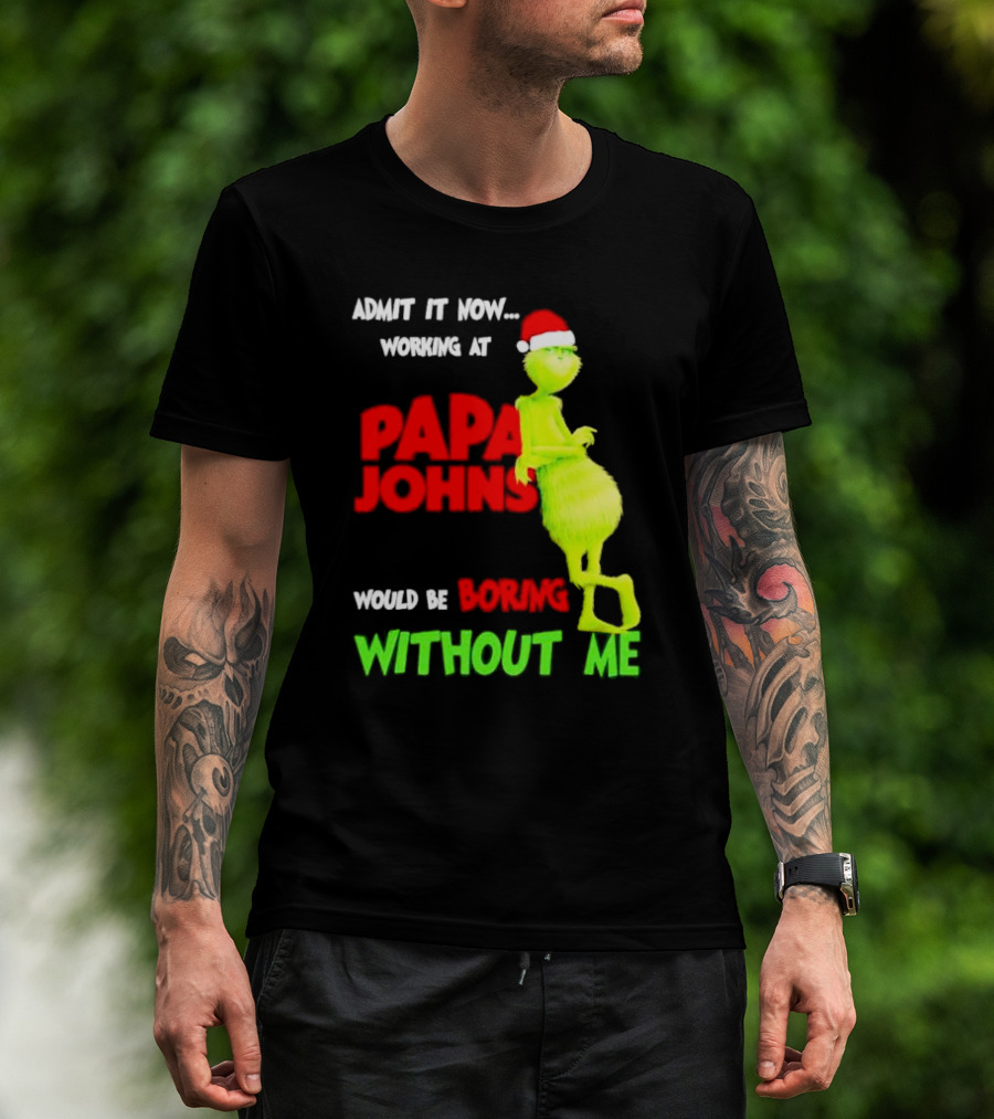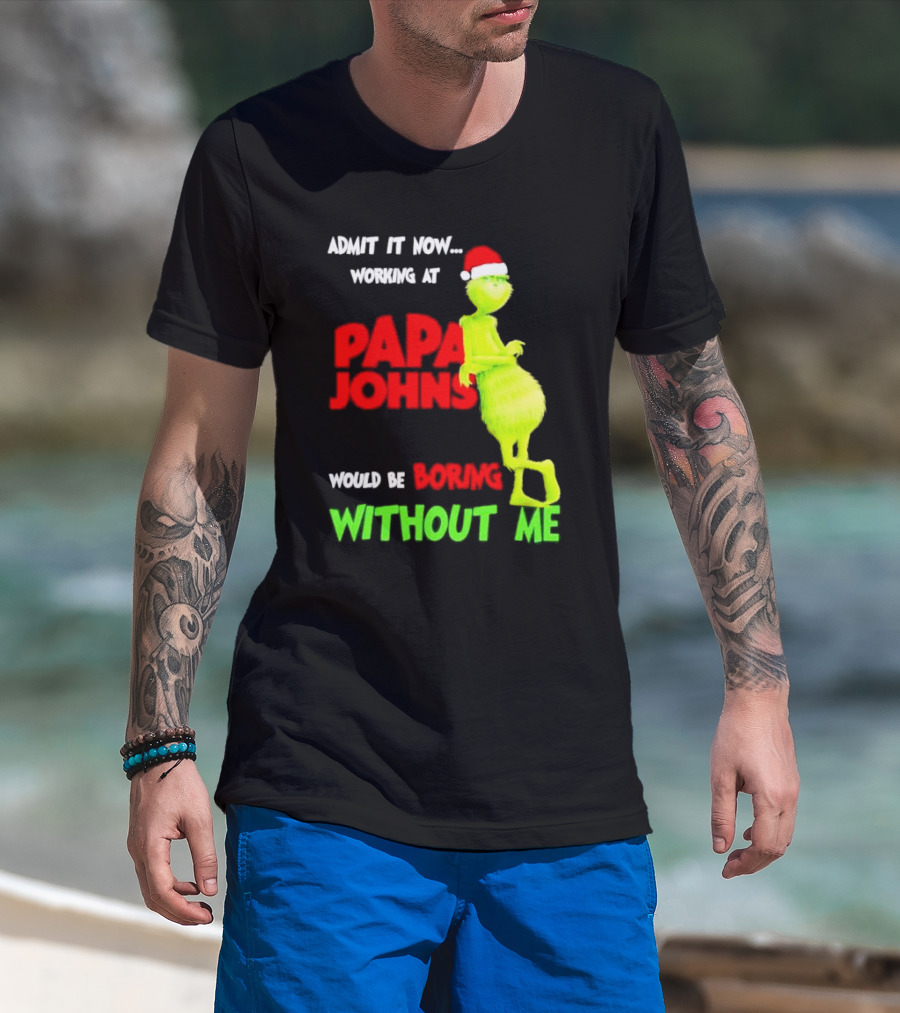 Admit It Now Working At Papa John's Would Be Boring Without Me Grinch With Santa Hat Christmas T-Shirt