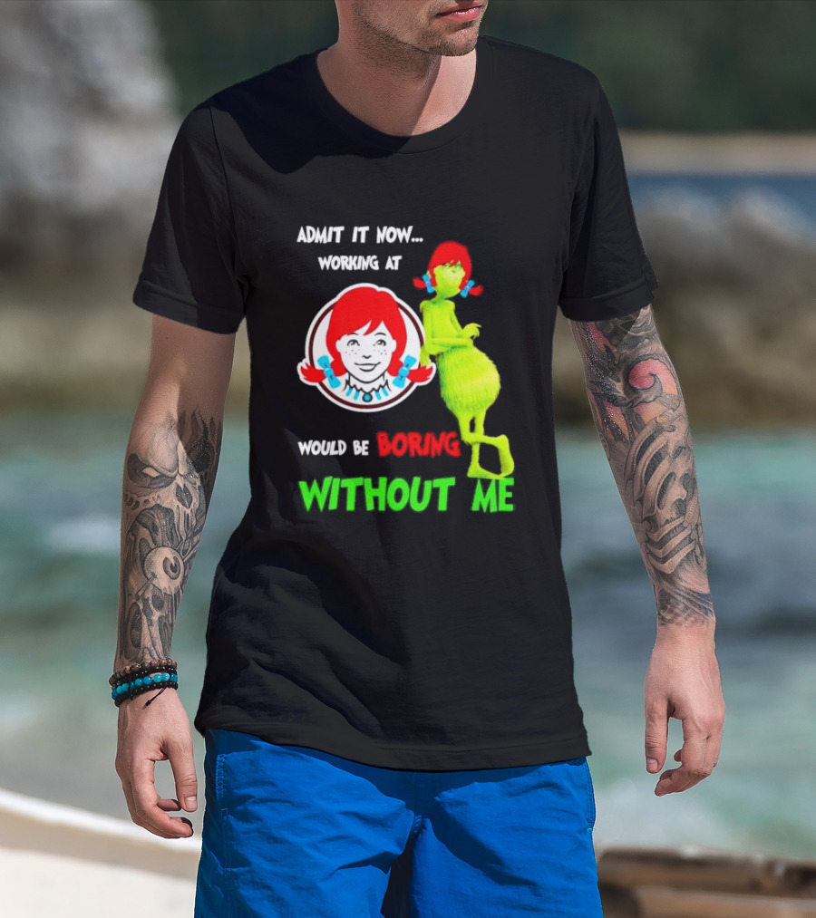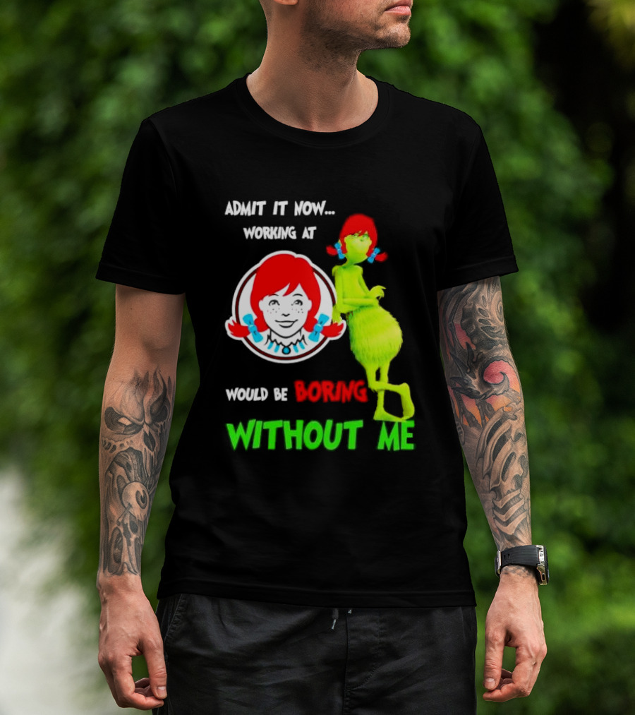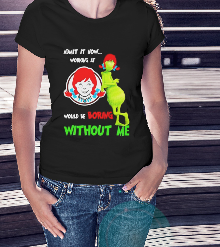 Admit It Now Working At Wendy's Would Be Boring Without Me Grinch With Wendy Hair Christmas T-Shirt