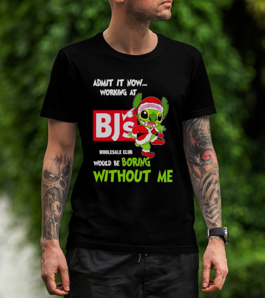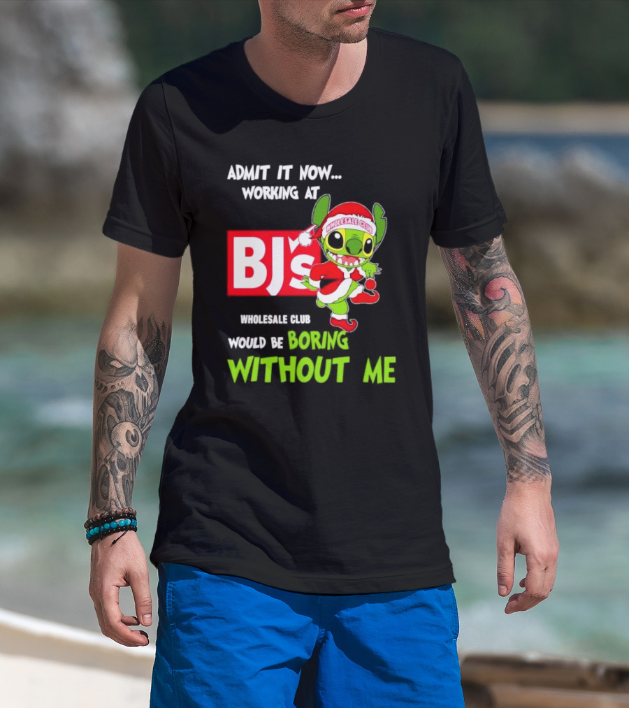 Admit It Now Working At BJ's Wholesale Club Would Be Boring Without Me Santa Stitch Christmas T-Shirt