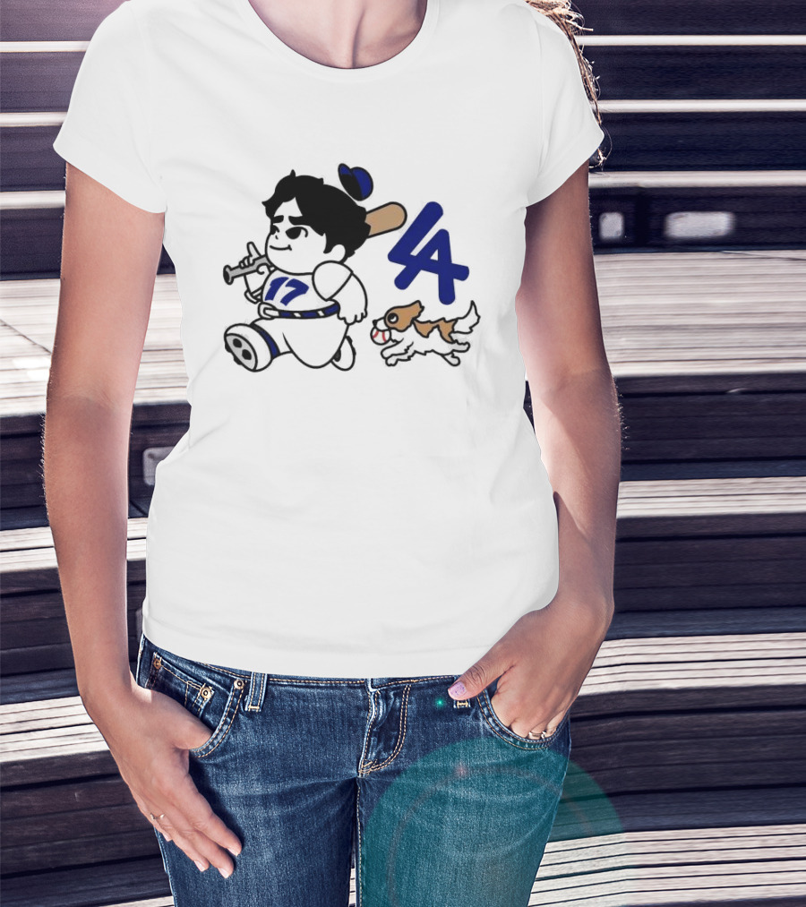 Chunkytani 10oz Fleece LA Baseball Dog And Player With Bat 17 T-Shirt