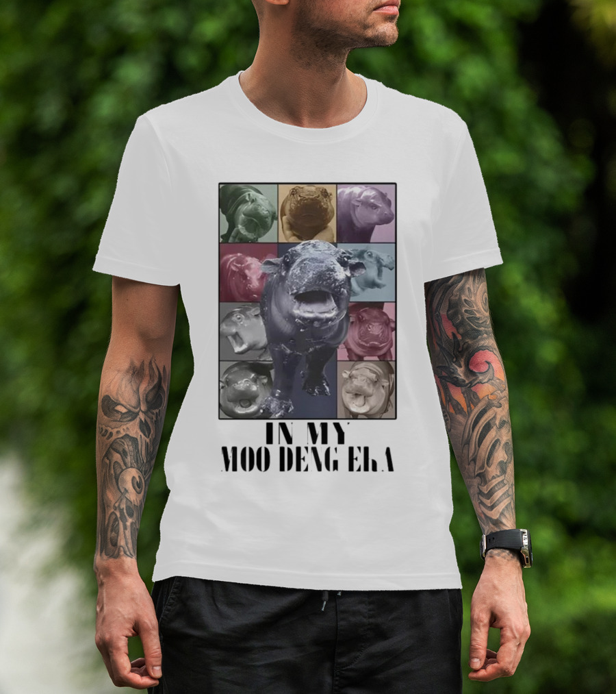 In My Moo Deng Era Colorful Cow Pop Art Collage T-Shirt