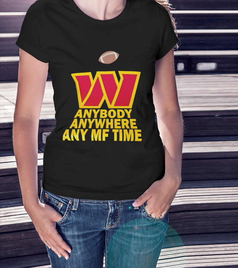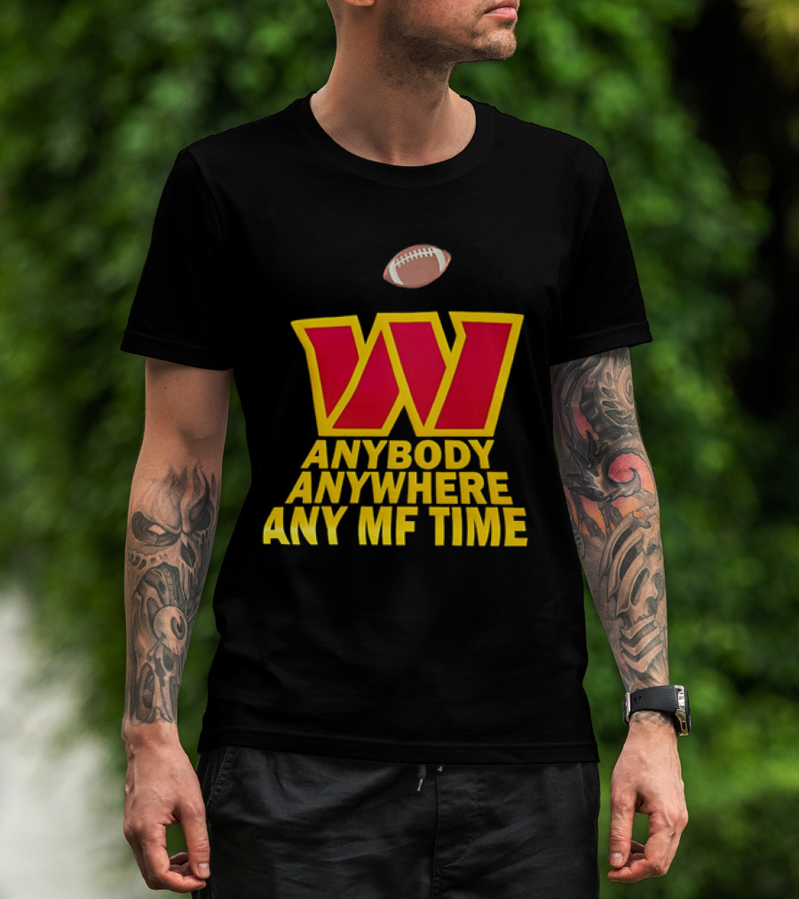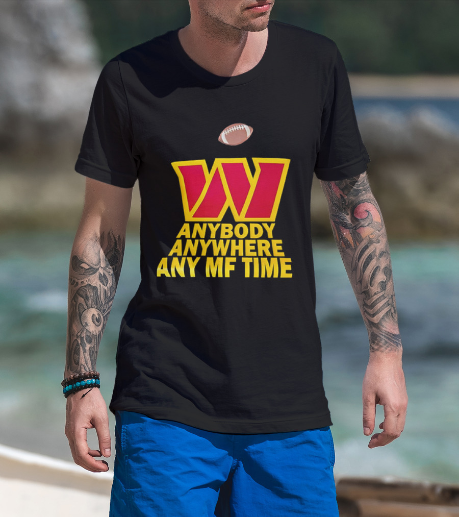 Washington Commanders W Logo Football Anybody Anywhere Any MF Time T-Shirt