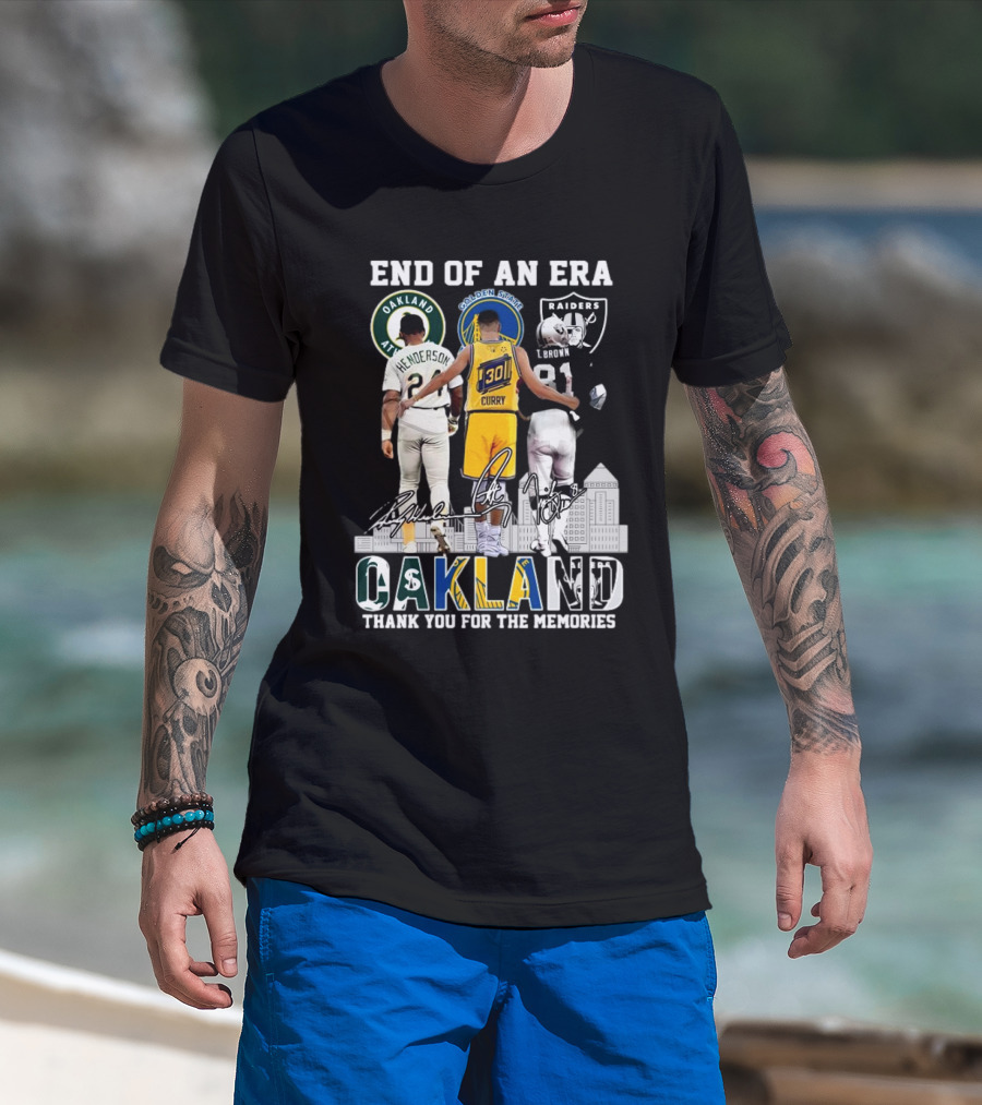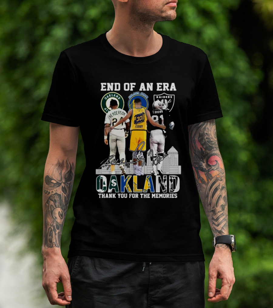End Of An Era Oakland Henderson Curry Brown Thank You For The Memories Signatures T-Shirt