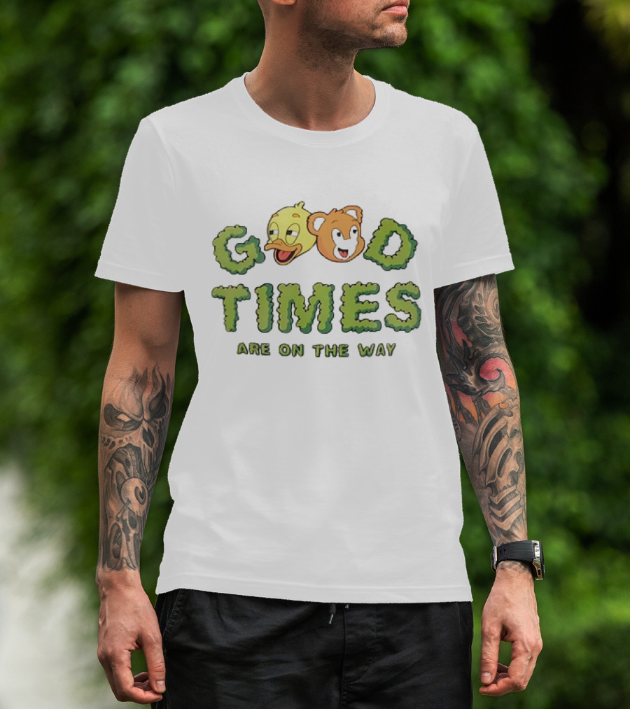 Good Times Are On The Way Duck And Bear Faces Text T-Shirt