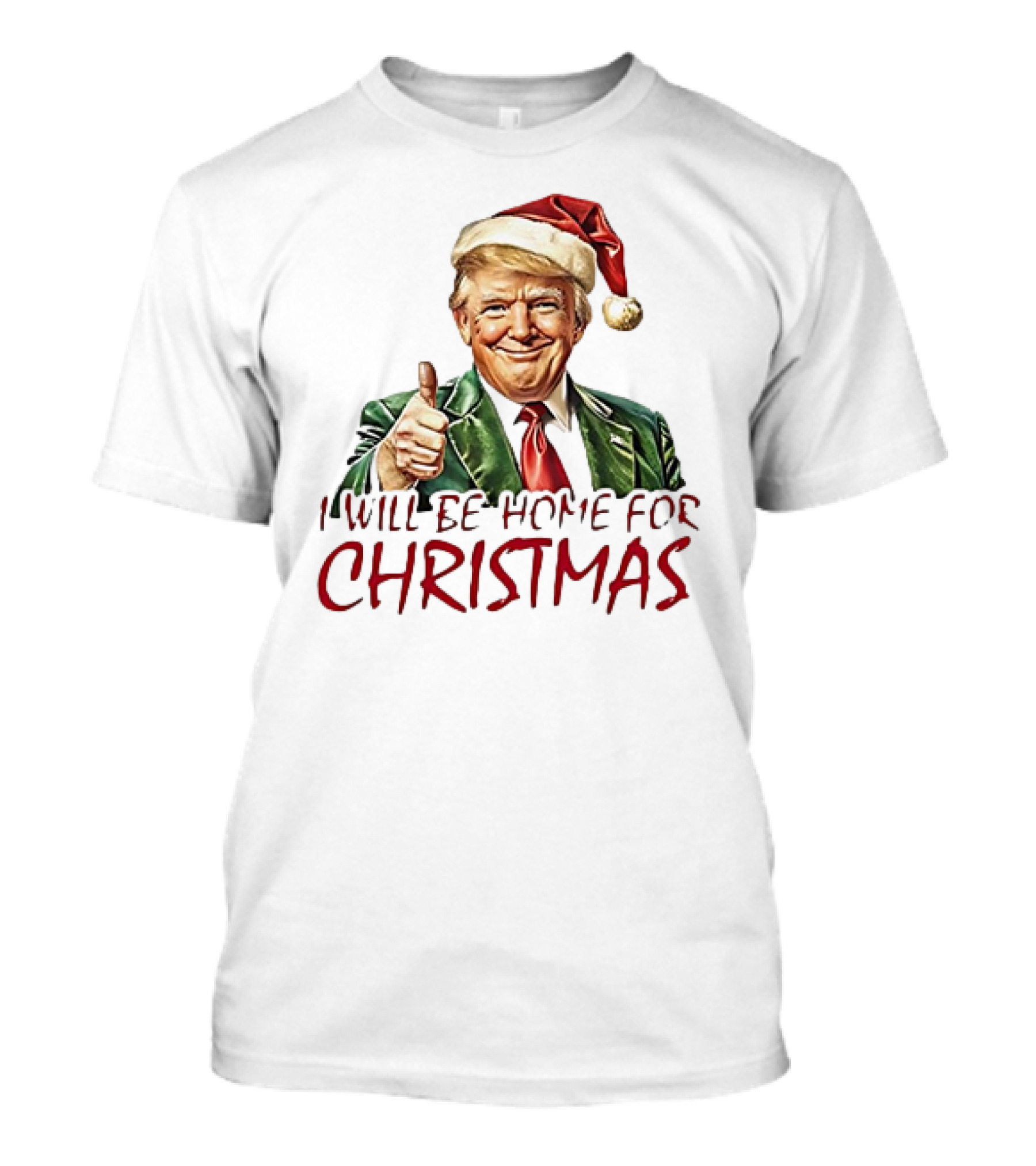 The I'll Be Home for Christmas Santa Hat Thumbs Up T-shirt is designed for everyday wear and a consistent fit. Fabric is pre-shrunk ring-spun cotton with durable stitching. See the size chart below for exact measurements.