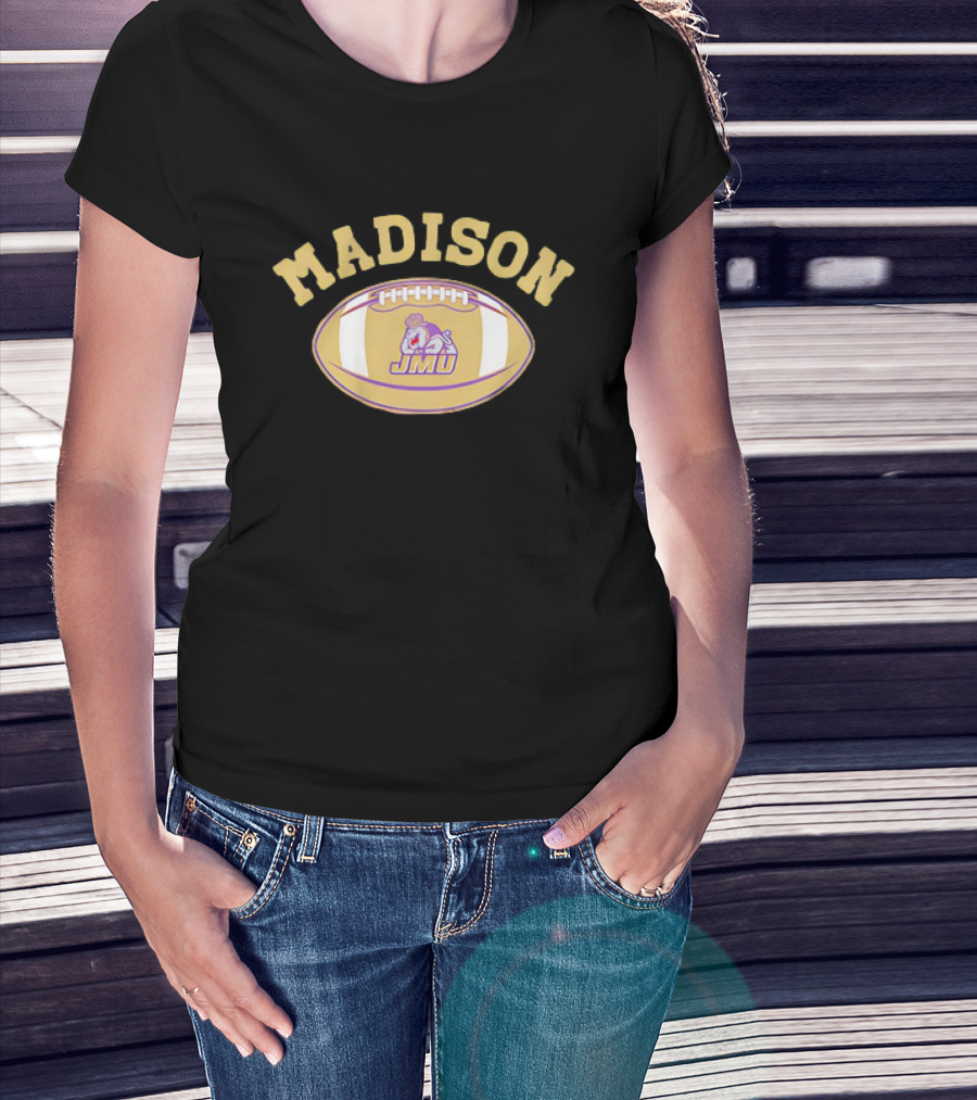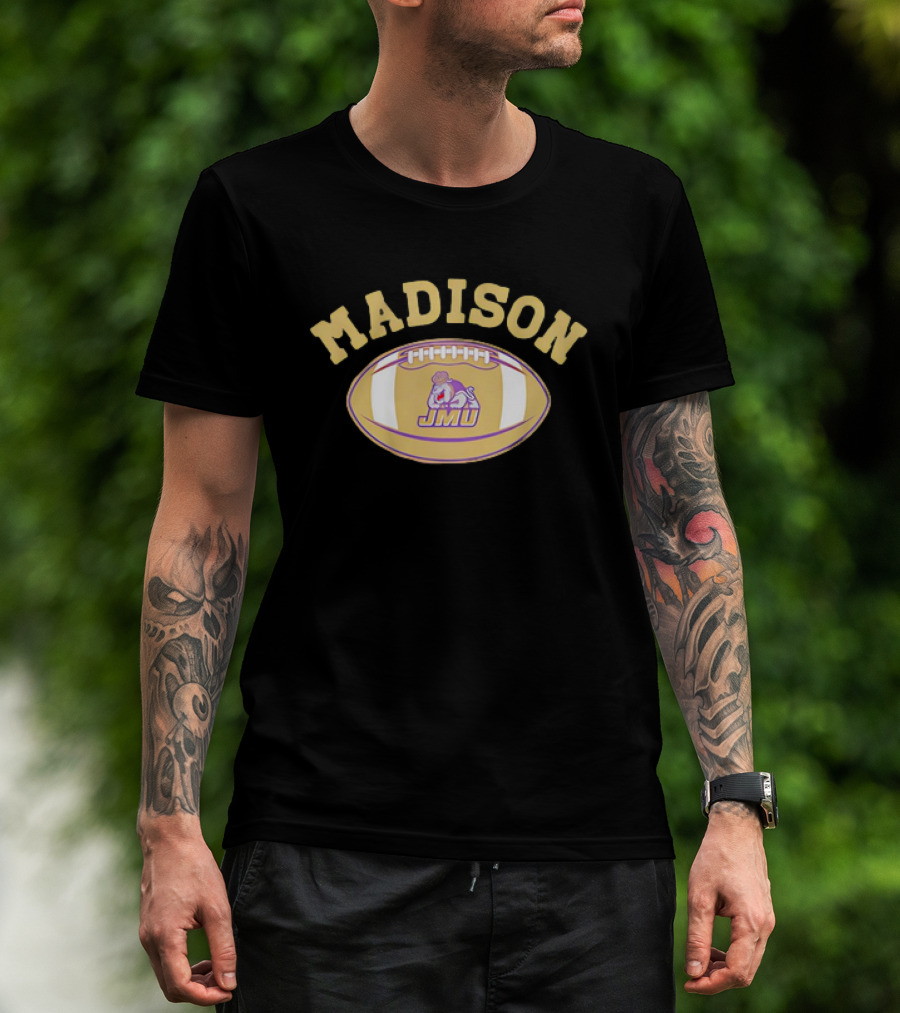 The Madison JMU Dukes Vintage Football T-shirt is designed for everyday wear and a consistent fit. Fabric is pre-shrunk ring-spun cotton with durable stitching. See the size chart below for exact measurements.