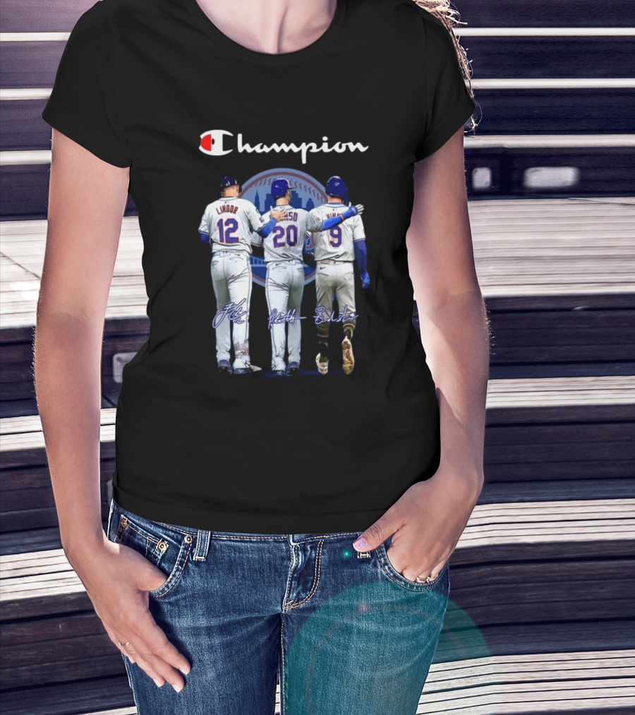 Champion New York Mets Lindor Alonso Nimmo Signatures Behind T-Shirt