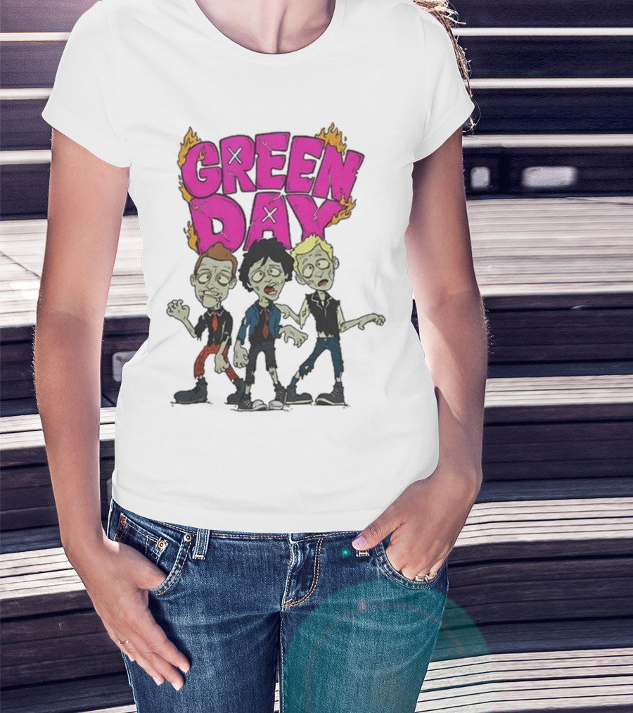 Green Day Zombie Band Cartoon Characters T-Shirt