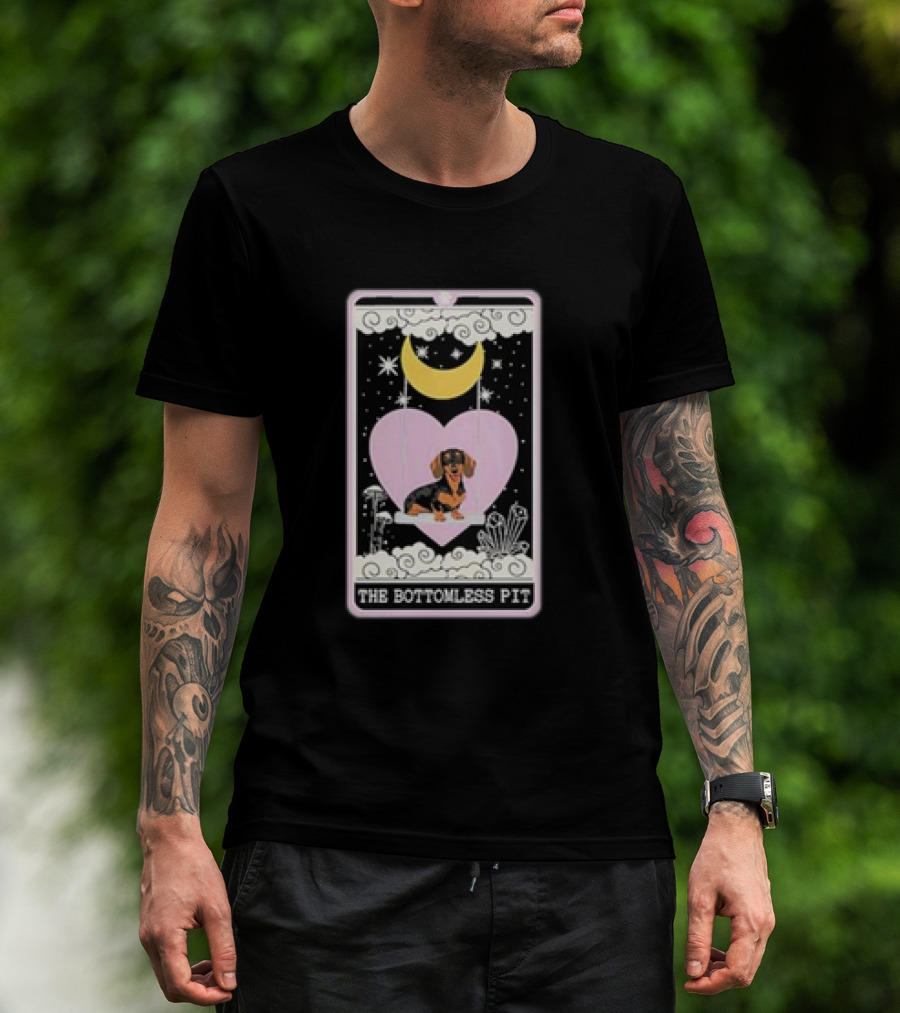 Dachshund Under Crescent Moon In Heart With Stars The Bottomless Pit T-Shirt