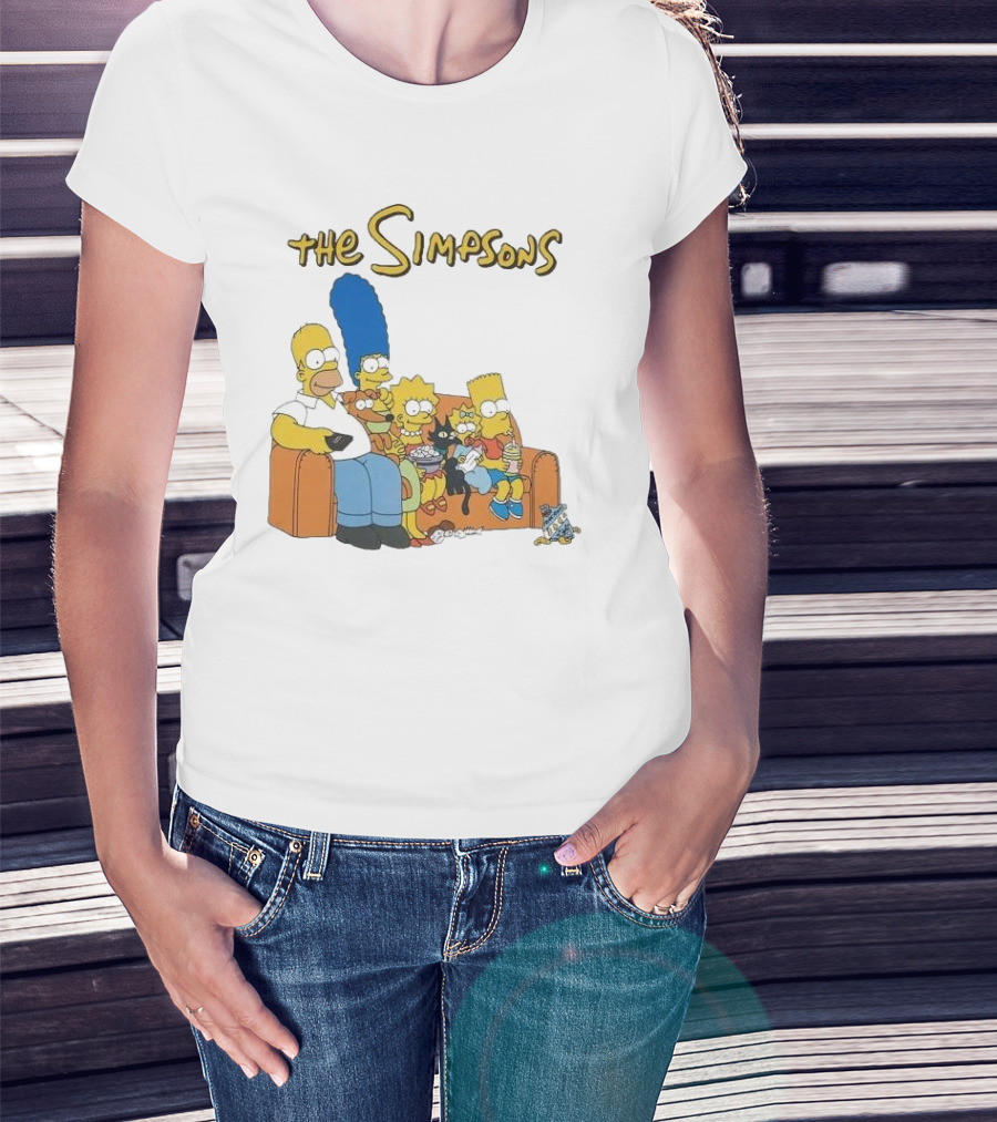 The Simpsons Couch Family Scene With Homer Marge Bart Lisa Maggie And Pets T-Shirt