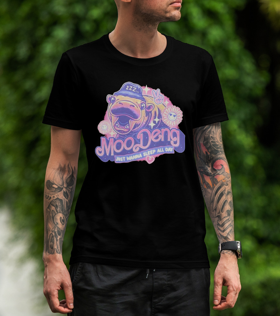 Moo Deng ZZZ Peaceful Sleep All Day With Flowers And Hearts T-Shirt