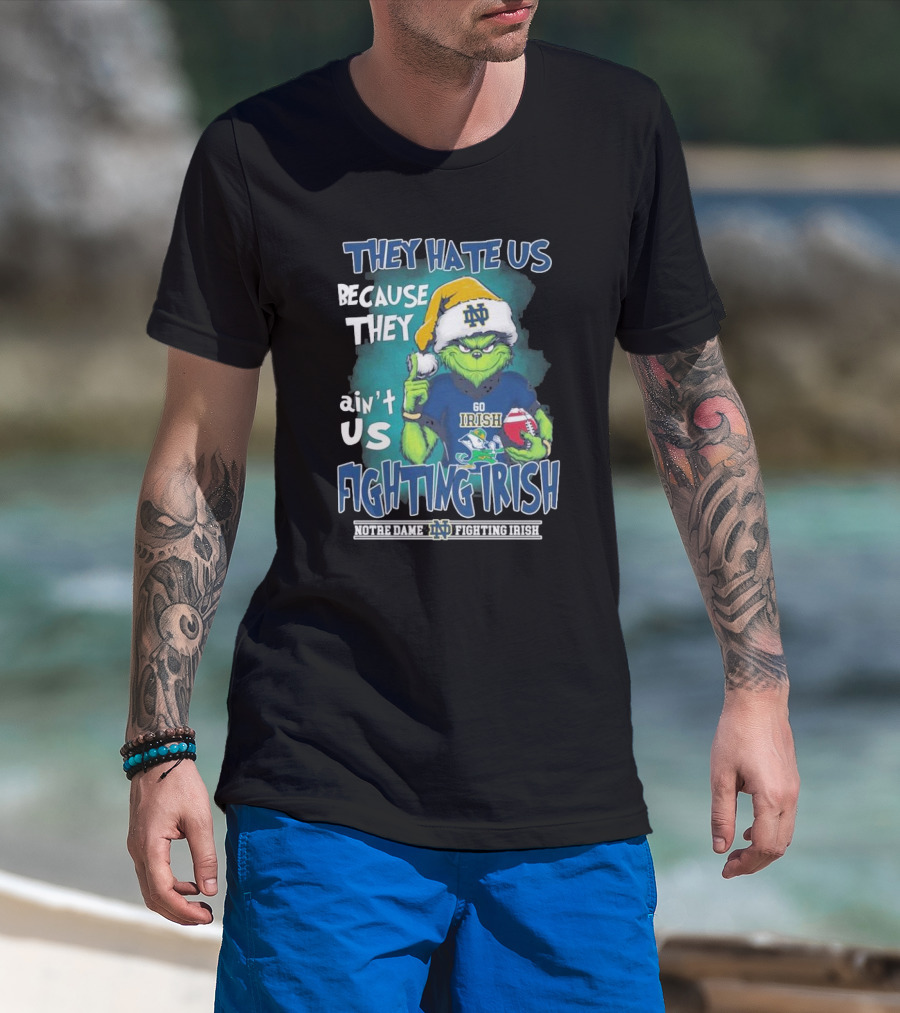 They Hate Us Because They Ain’t Us Grinch Go Irish Notre Dame Fighting Irish Christmas T-Shirt