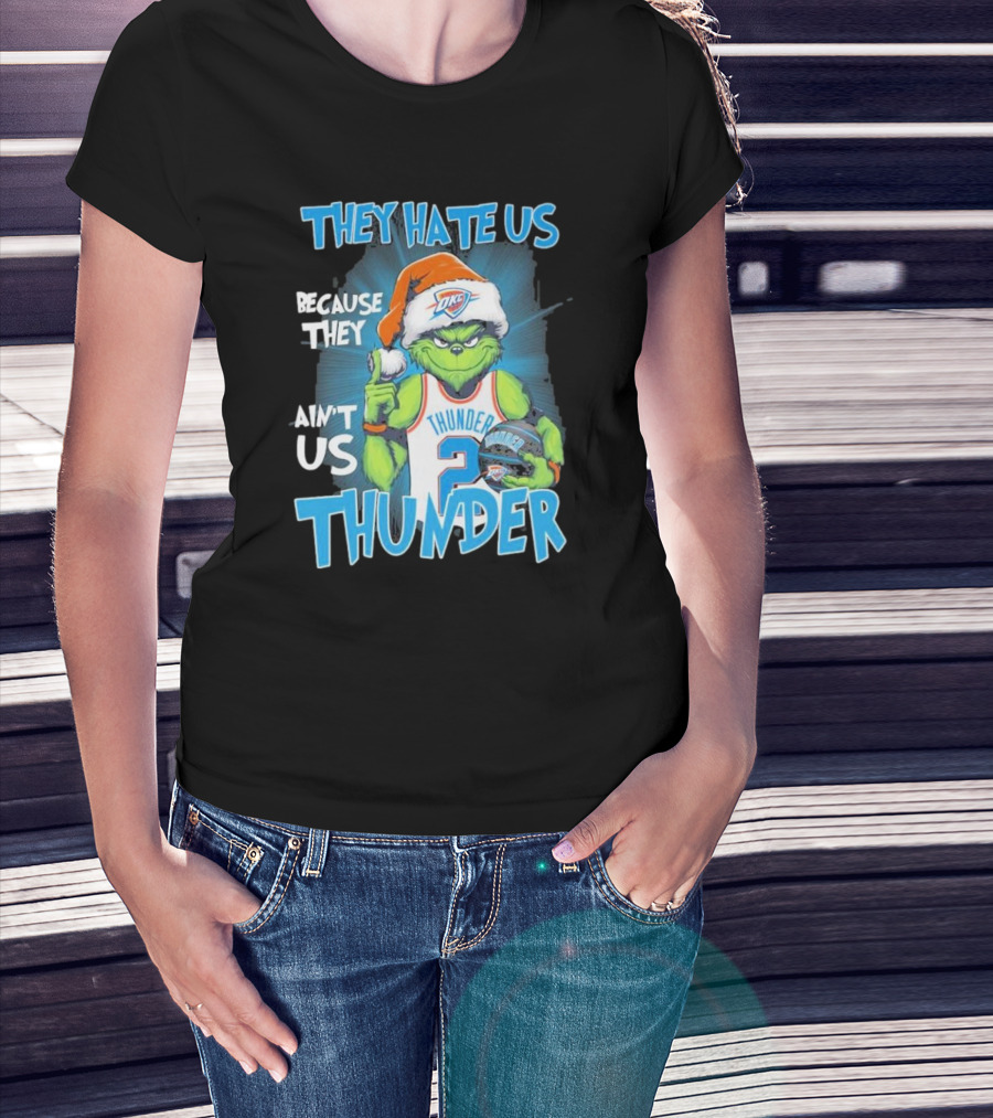 They Hate Us Because They Ain’t Us Grinch Thunder Christmas OKC Santa Hat T-Shirt