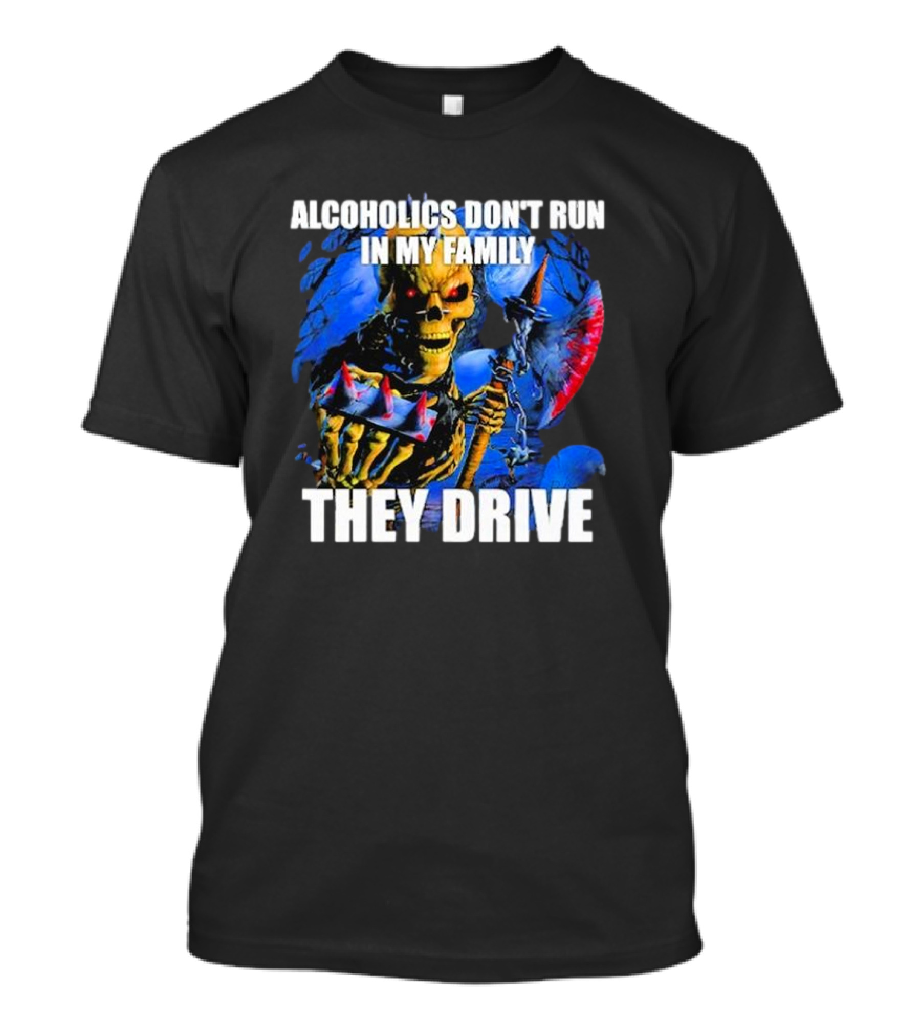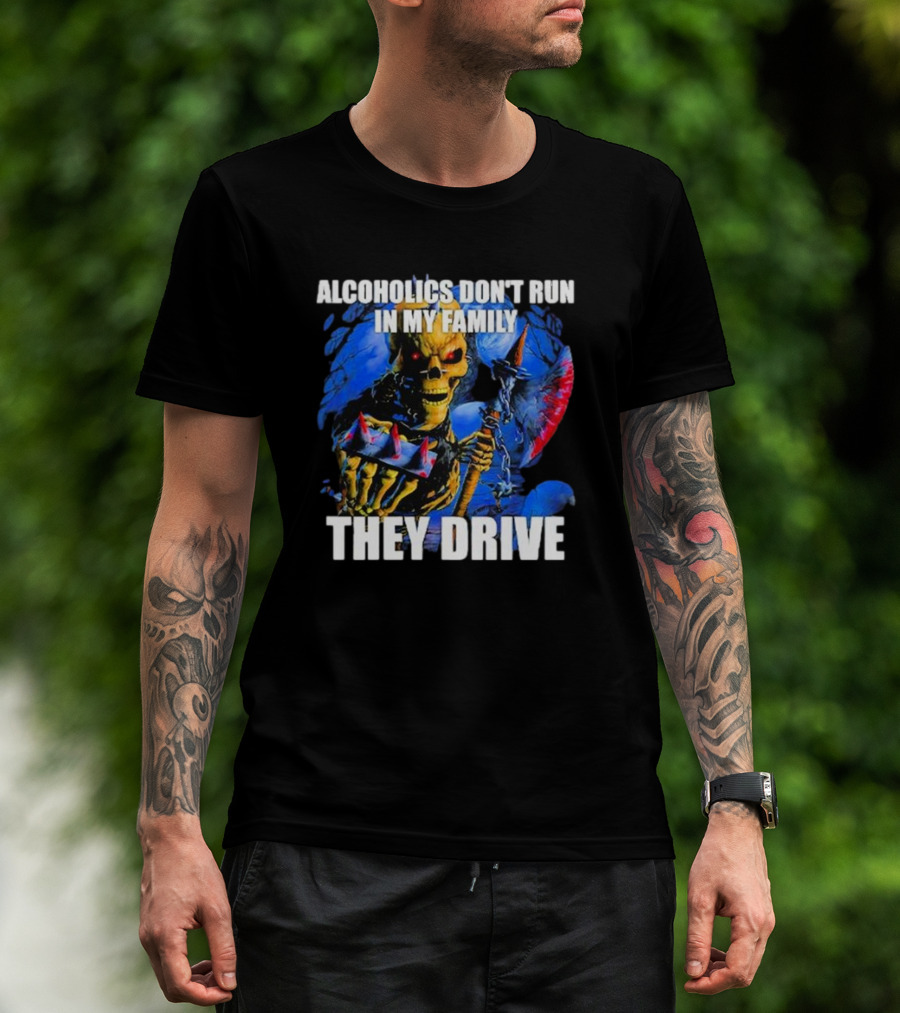 Skeleton Alcoholics Don't Run In My Family They Drive T-Shirt