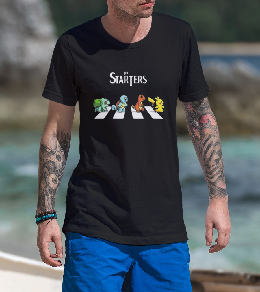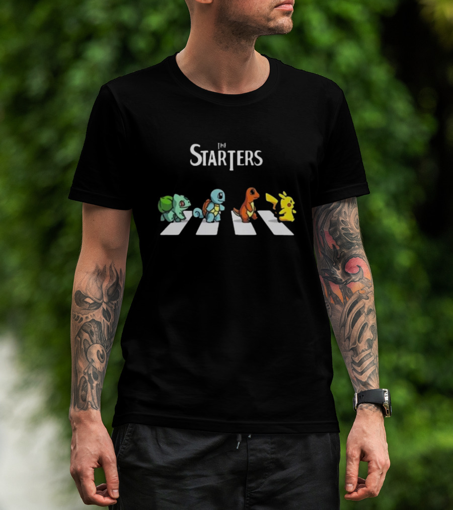 The Starters Pokemon Abbey Road Parody With Bulbasaur Squirtle Charmander Pikachu T-Shirt