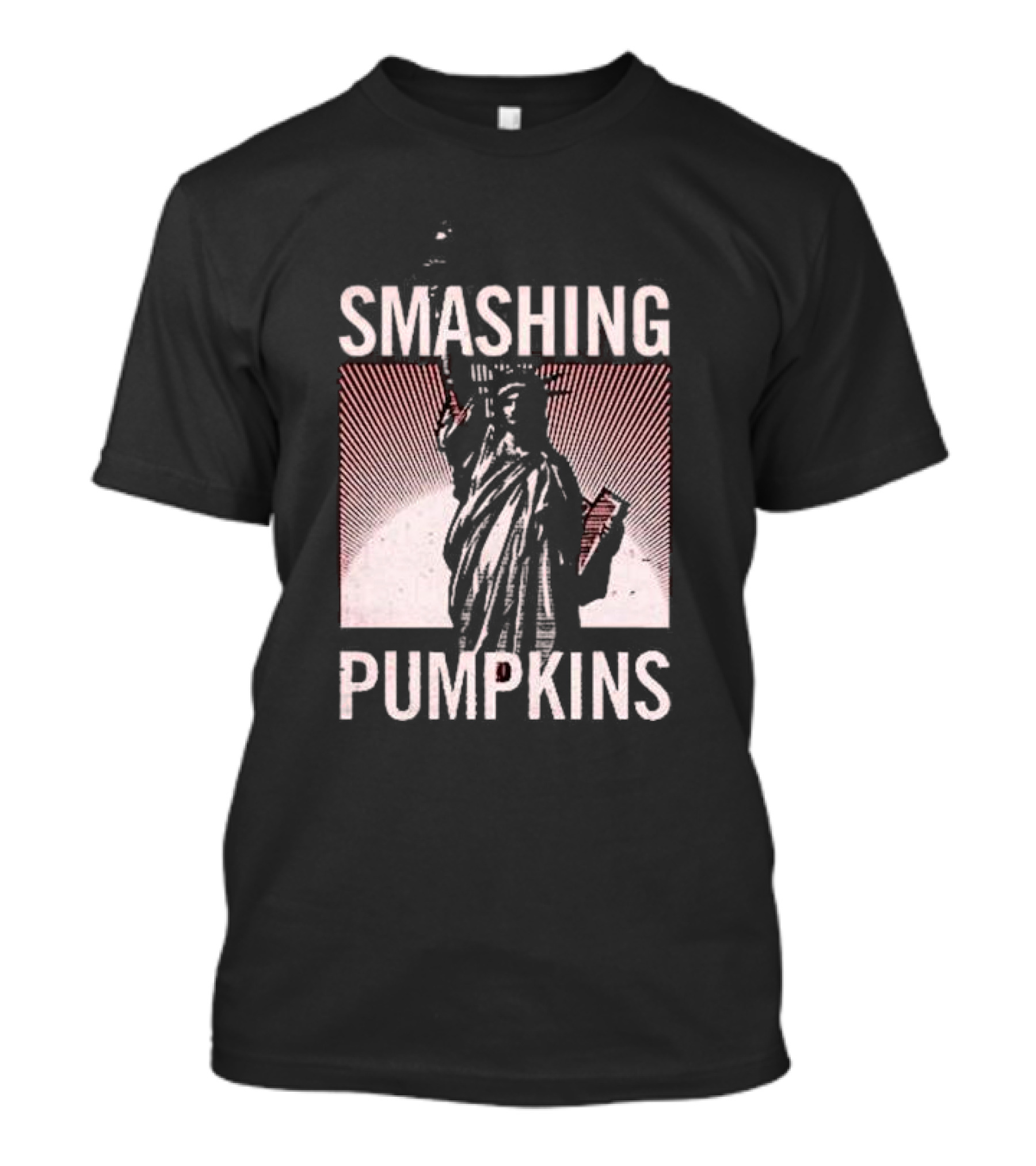 The Smashing Pumpkins Liberty Statue Zeitgeist T-shirt is designed for everyday wear and a consistent fit. Fabric is pre-shrunk ring-spun cotton with durable stitching. See the size chart below for exact measurements.