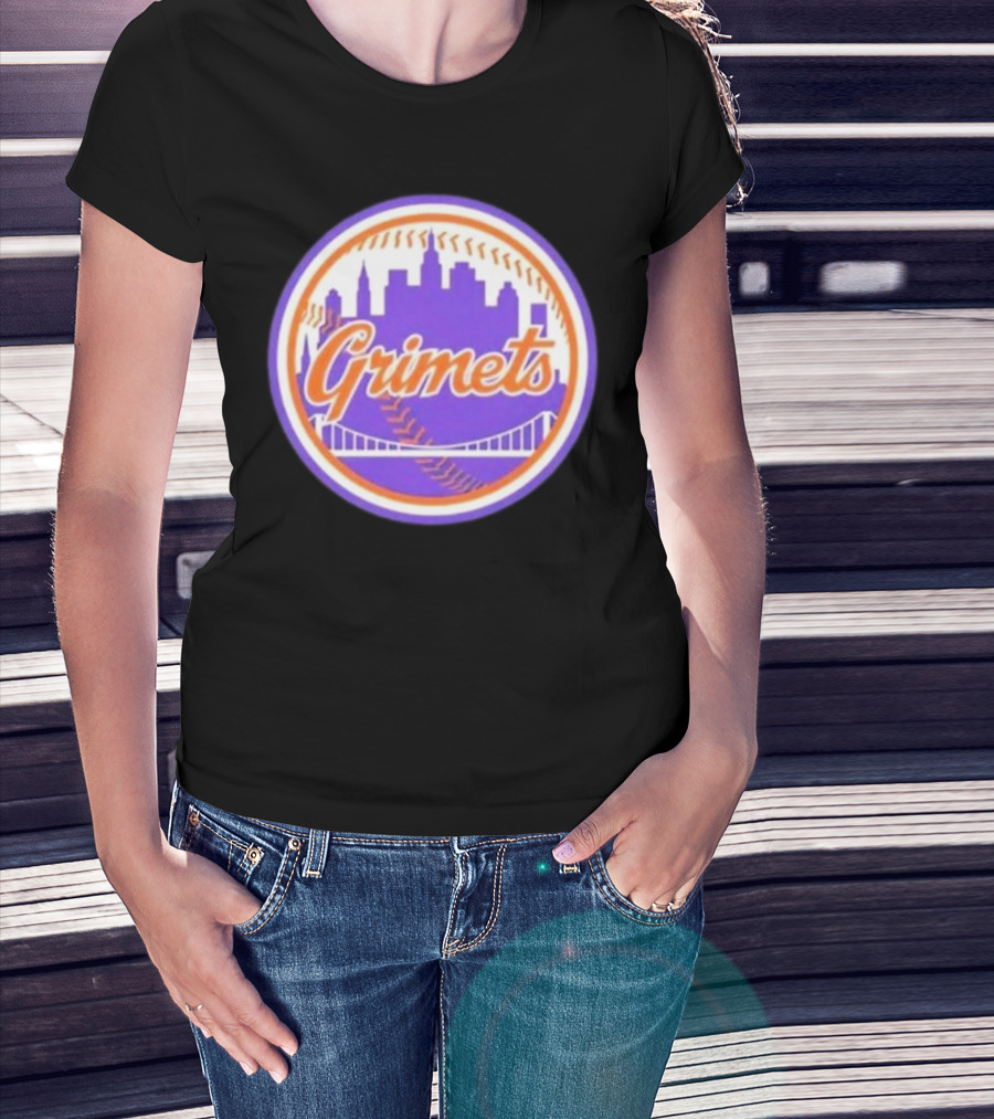 Grimets Ny Mets Skyline Purple Baseball Circle T-Shirt