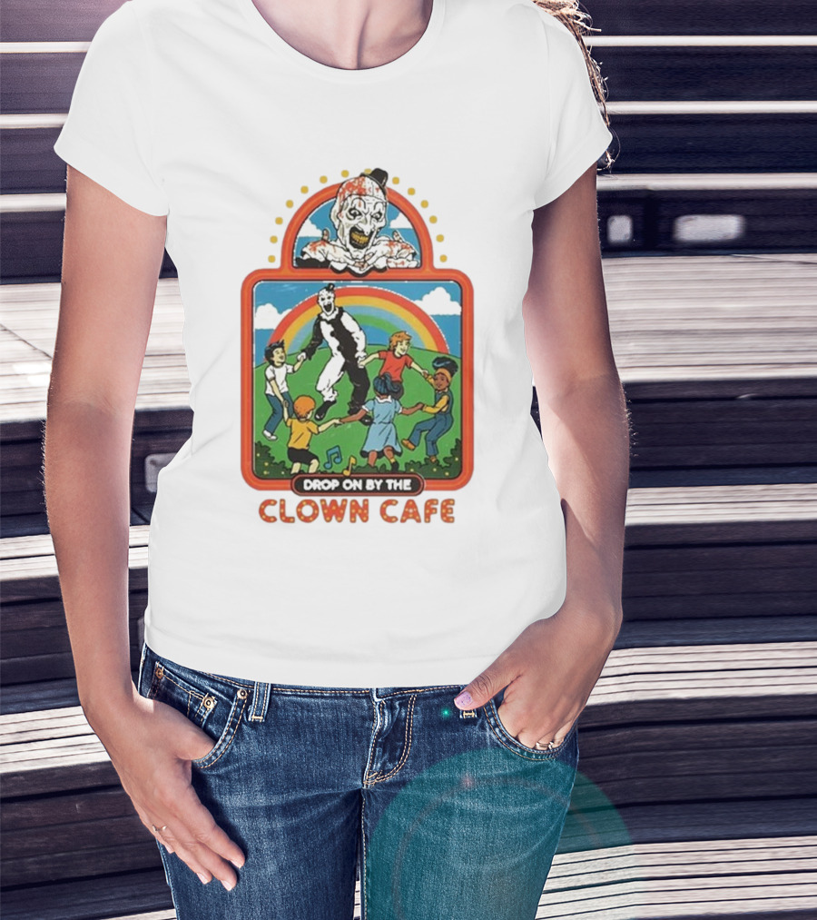 Drop On By The Clown Cafe Rainbow Clown Kids Circle T-Shirt