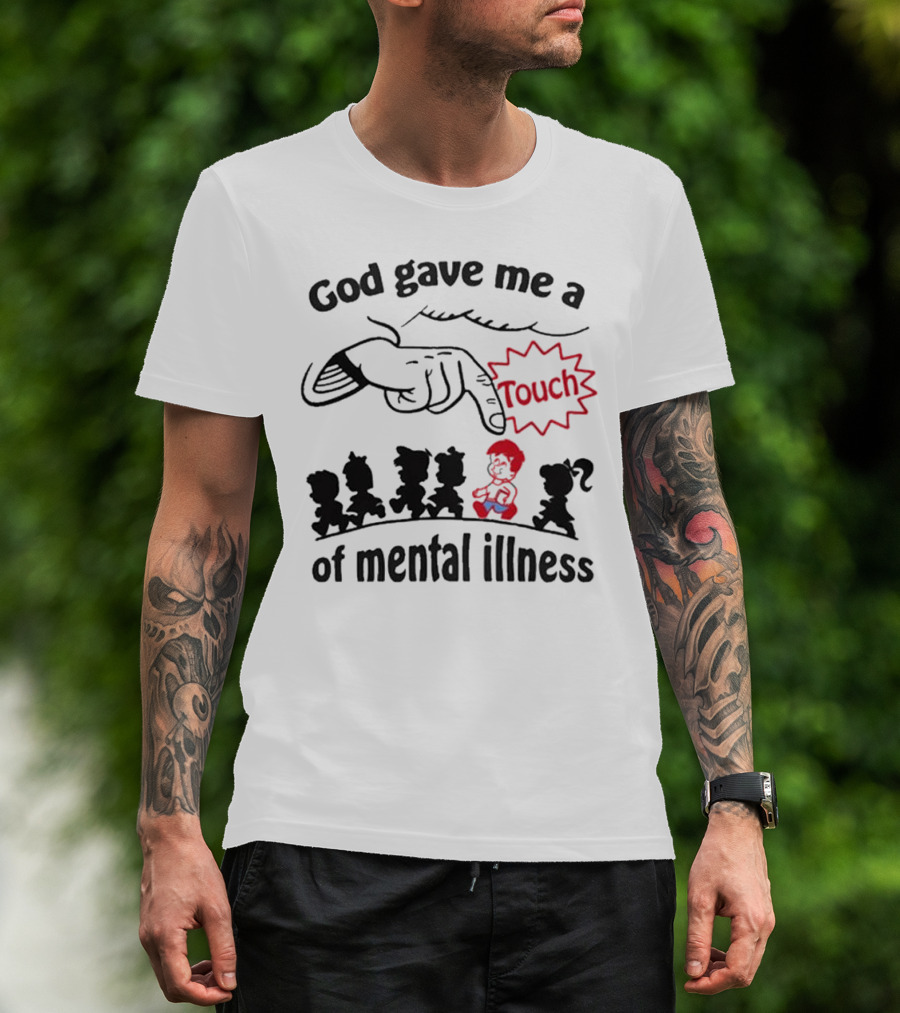 God Gave Me A Touch Of Mental Illness Finger Pointing At Cartoon Figures T-Shirt