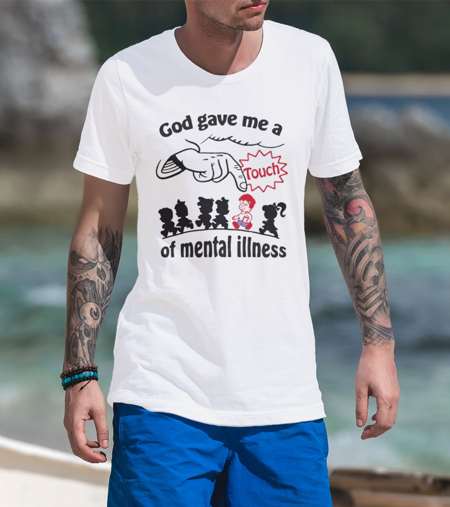 The God Gave Me A Touch Of Mental Illness Finger Pointing at Cartoon Figures T-shirt is designed for everyday wear and a consistent fit. Fabric is pre-shrunk ring-spun cotton with durable stitching. See the size chart below for exact measurements.