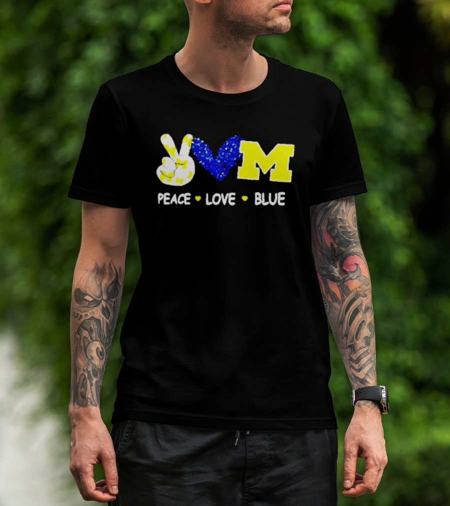 The Peace Love M Blue T-shirt is designed for everyday wear and a consistent fit. Fabric is pre-shrunk ring-spun cotton with durable stitching. See the size chart below for exact measurements.