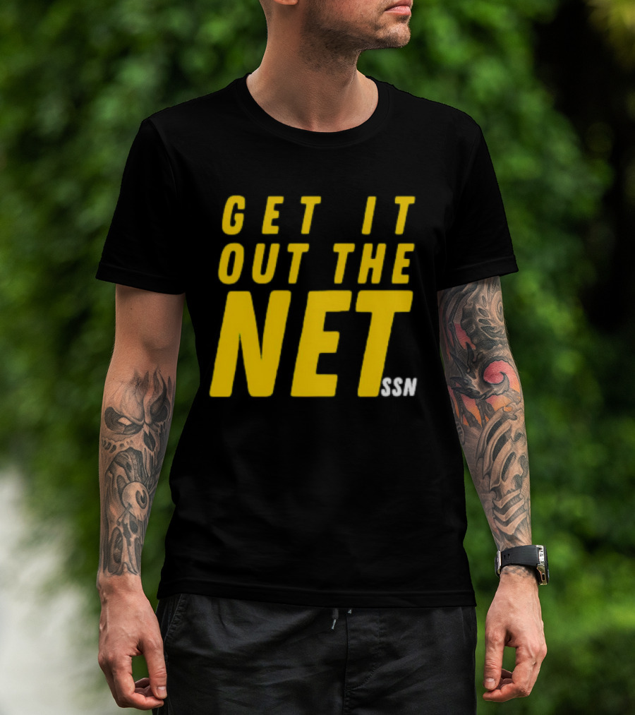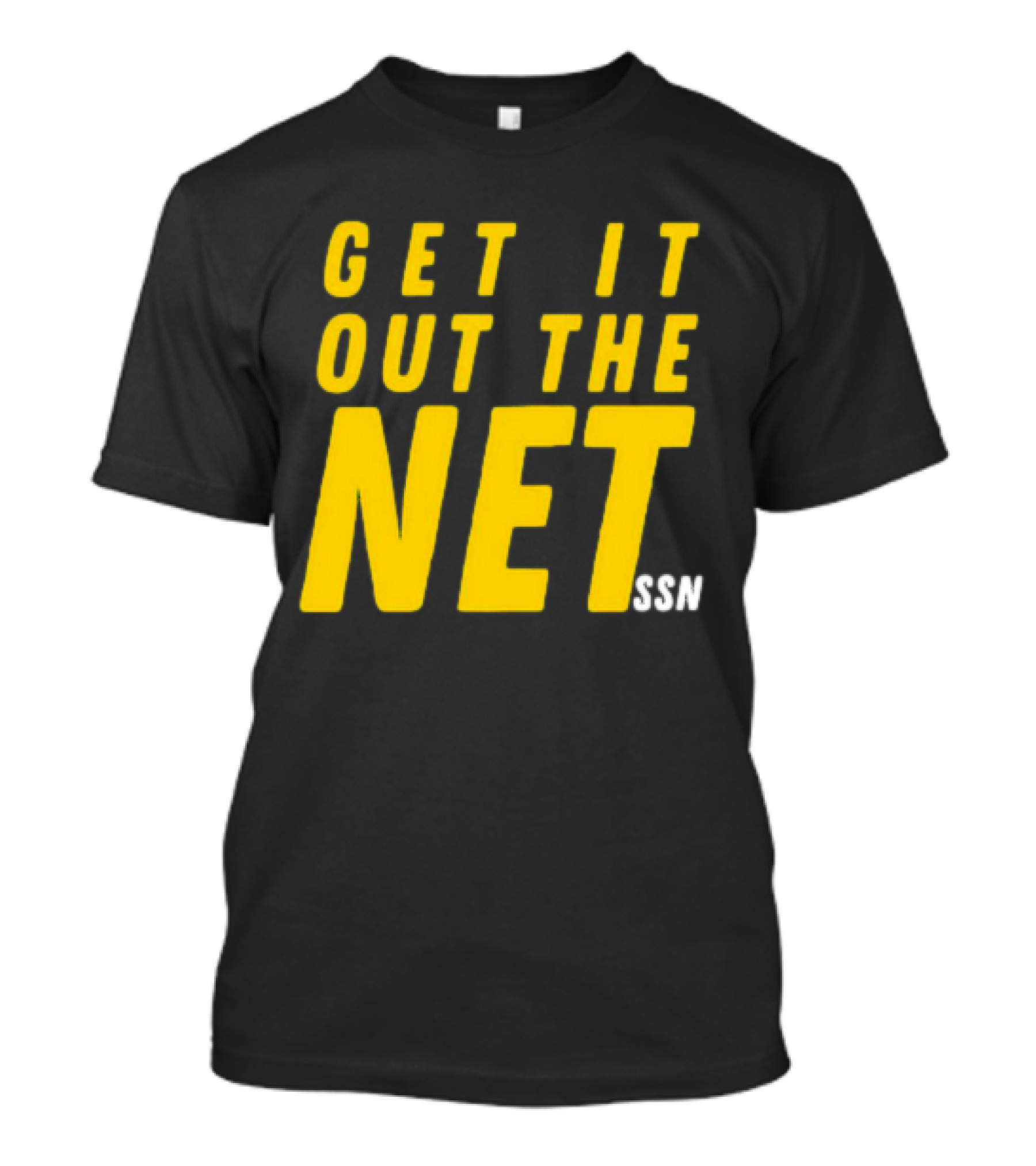 The GET IT OUT THE NET SSN T-shirt is designed for everyday wear and a consistent fit. Fabric is pre-shrunk ring-spun cotton with durable stitching. See the size chart below for exact measurements.