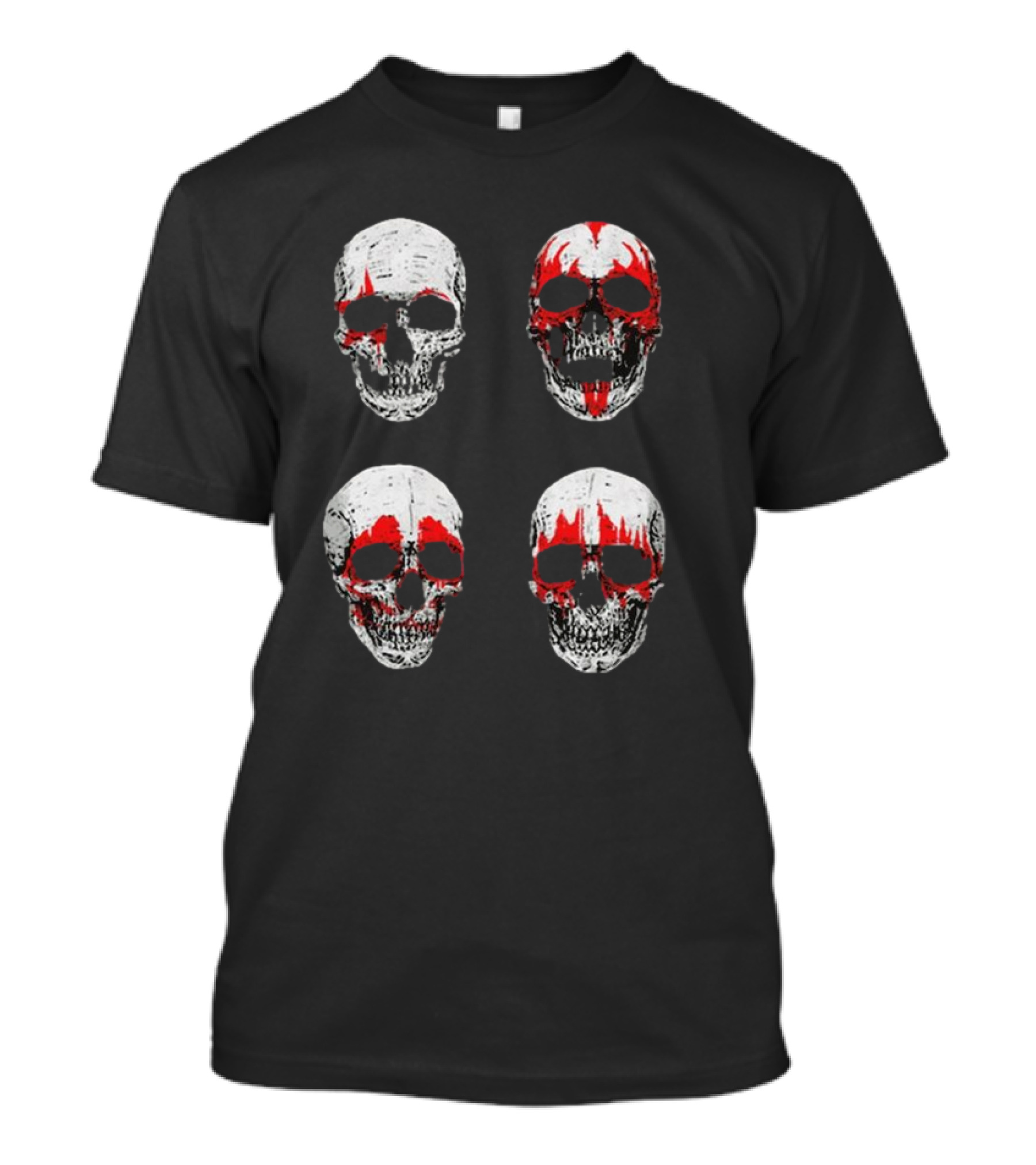 The Glow In The Dark Hotter Than Hell Red and White Skulls T-shirt is designed for everyday wear and a consistent fit. Fabric is pre-shrunk ring-spun cotton with durable stitching. See the size chart below for exact measurements.