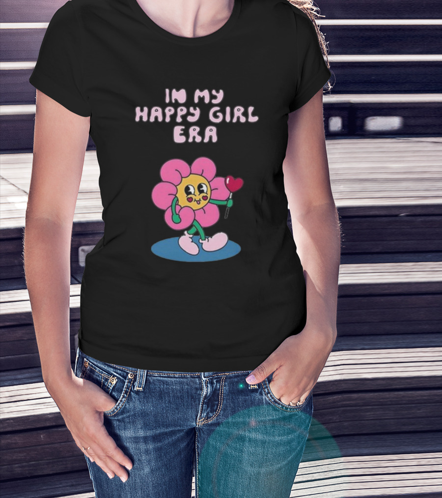 In My Happy Girl Era With Pink Flower Character And Heart Lollipop T-Shirt