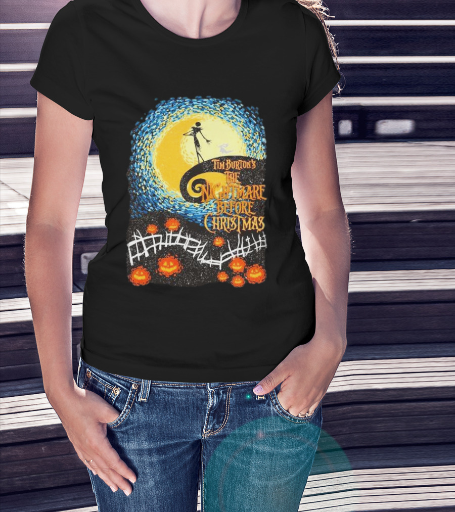 How much will this Tim Burton's The Nightmare Before Christmas Starry Night Vintage Pumpkin Fence shirt shrink?