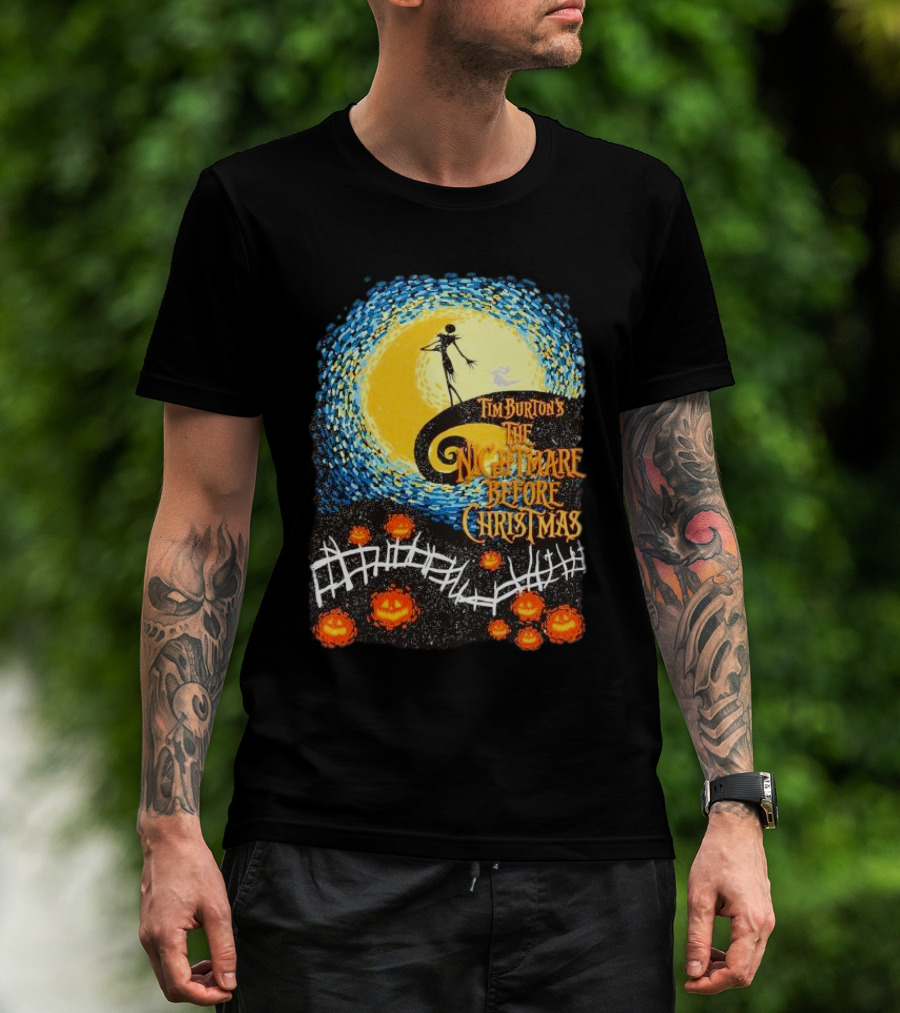 Tim Burton's The Nightmare Before Christmas Starry Night Vintage Pumpkin Fence T-Shirt