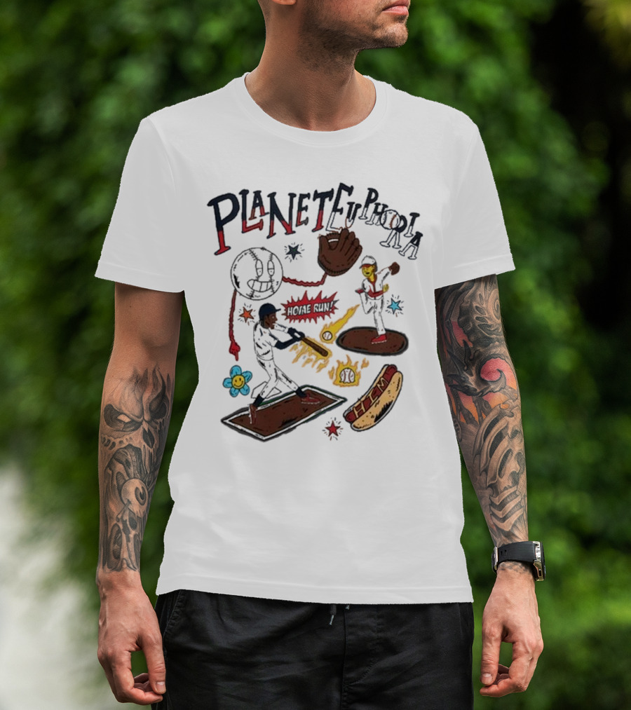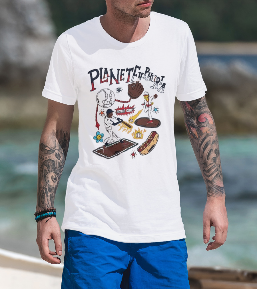 Planet Euphoria Baseball Home Run Hot Dog Illustration With Players And Glove T-Shirt